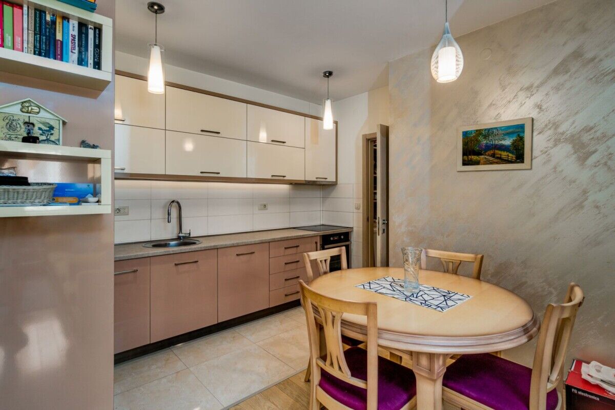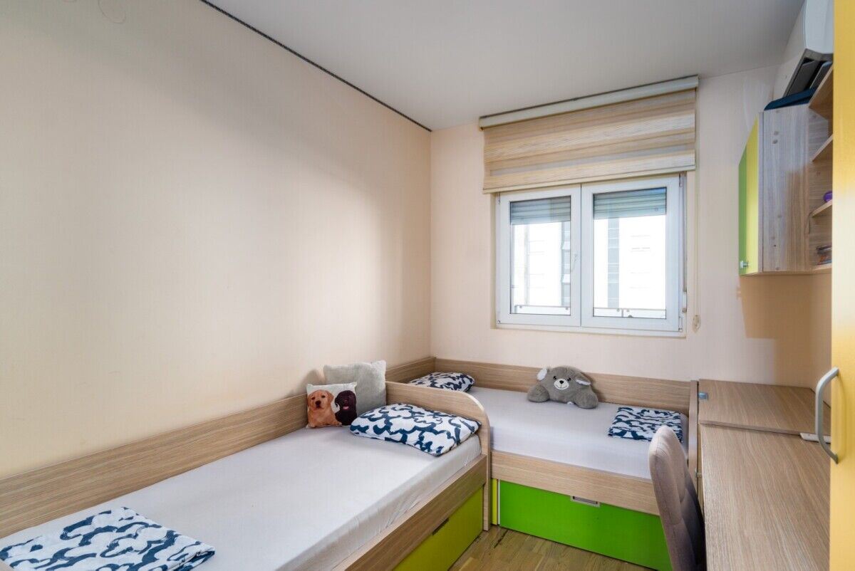 For sale is a two-bedroom apartment in the City quarter, covering an area of 72 m², fully furnished. The apartment has a functional layout and is located in a quality building in one of the most sought-after locations in Podgorica.The layout of the rooms includes:• Entrance hallway• Spacious living room with dining area• Kitchen with additional pantry• Toilet• Bathroom• Walk-in closet• Two bedrooms• TerraceThe apartment is equipped with a multi-split heating and cooling system in all rooms (Fujitsu).The price with a garage space of 13 m², located immediately next to the entrance to the elevator, is €240,000.The price without a garage space is €225,000, and a large public parking is available nearby.