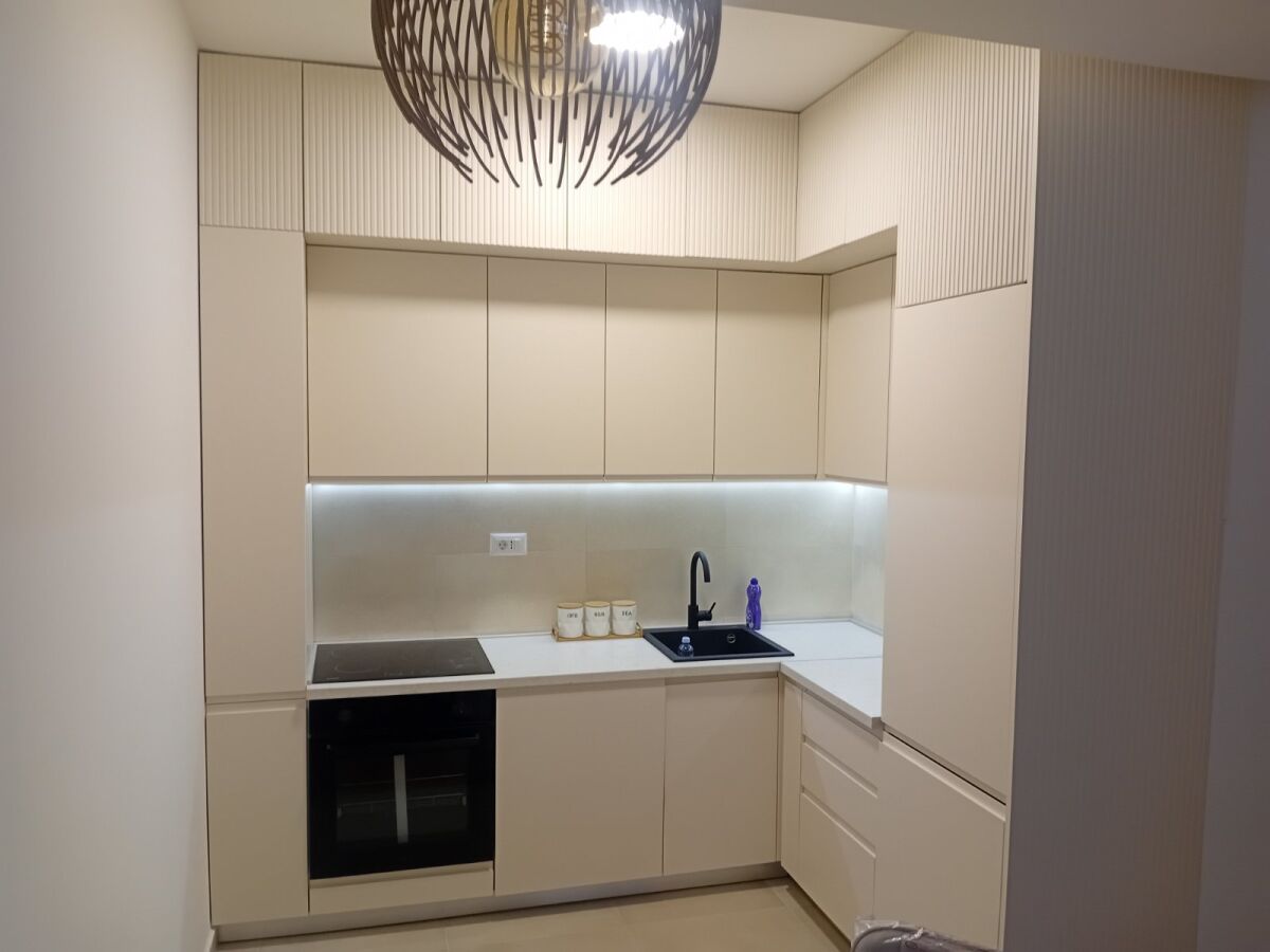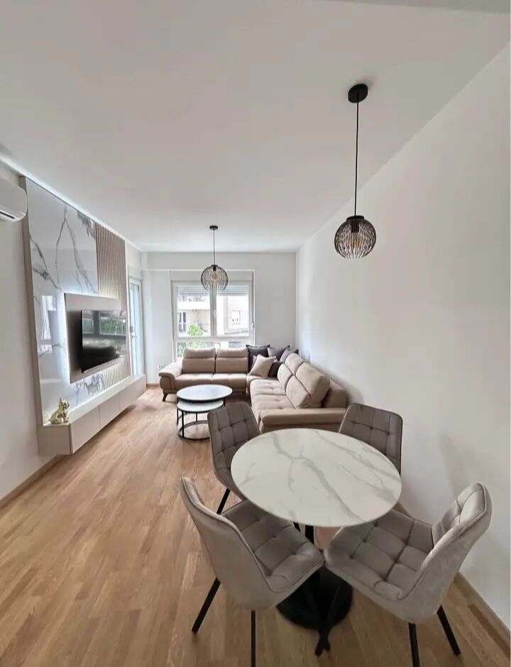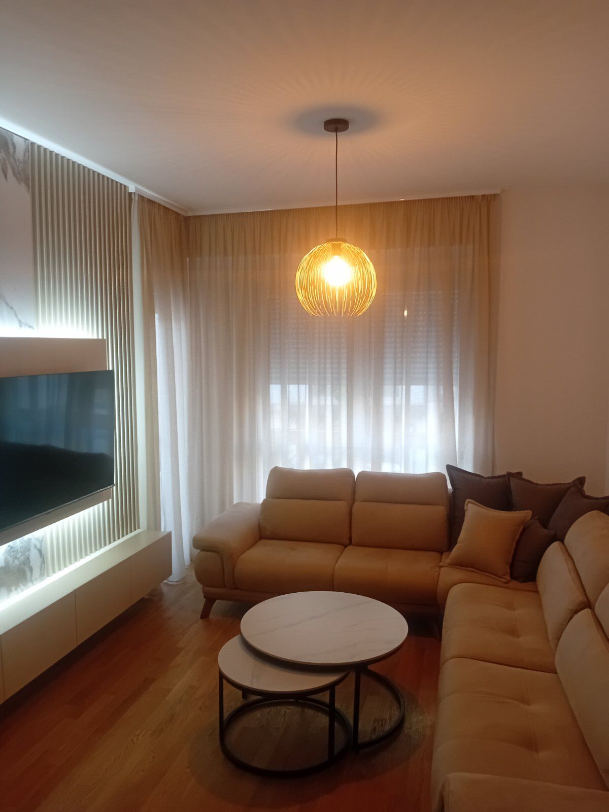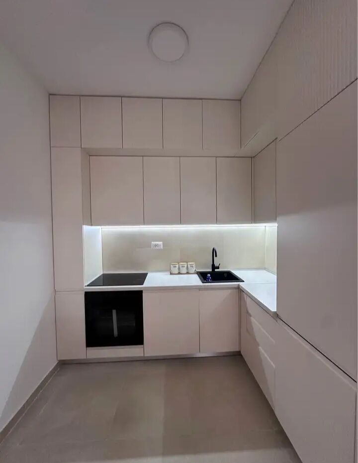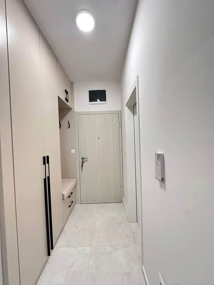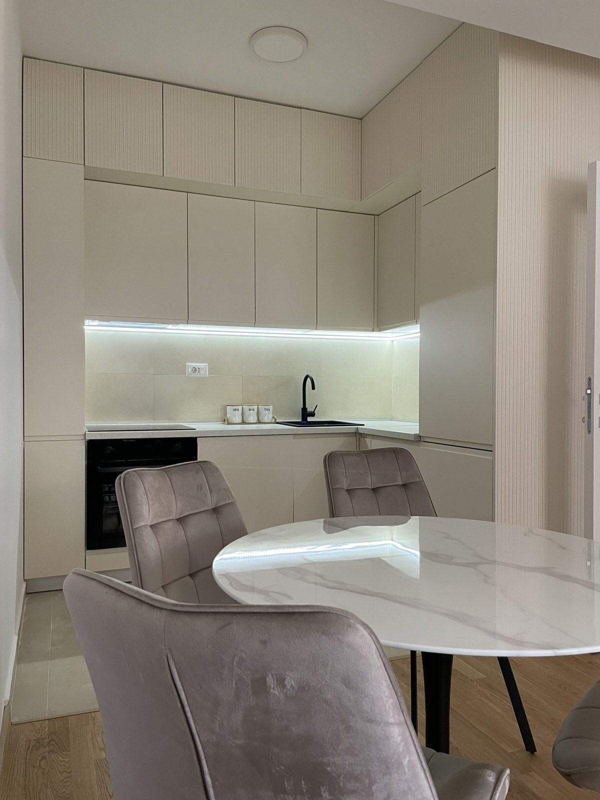 A brand new, one-room apartment of 45m2 is for sale, located on the 1st floor of the Nivel building, near Multicom. The apartment is fully equipped with high-quality furniture under warranty. The kitchen is made to measure from plywood, as are the built-in closets. This apartment offers a perfect combination of comfort, functionality and modern design. The price includes a garage space of 13m2.