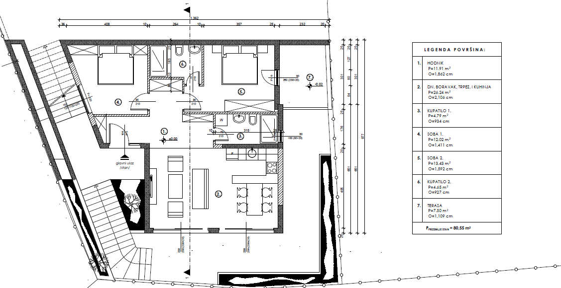 Located in a quiet area within walking distance to Luštica Bay Centrale, the newly built modern school, supermarket, restaurants, and the beautiful Plavi Horizonti beach. Just a 10-minute drive to some of the most stunning beaches on the Luštica peninsula The building is situated on an elevated position above the center of Radovići. It is an excellent investment opportunity, providing great value compared to the more expensive properties in the nearby area 🛏 Available Apartments: Ground floor: • Two-bedroom apartment – 77.2 m² (€164,000) First floor: • Two-bedroom apartment with 2 bathrooms – 80.5 m² (€212,000) Second floor & attic: • Duplex two-bedroom apartment with a large sea-view terrace and 2 bathrooms – 147.5 m² (€373,000) It is possible to purchase the entire building and create a three-storey villa or take over the investment for €630,000 Each apartment has a separate entrance and a free parking space in front of the building. A total of 5 parking spaces are available