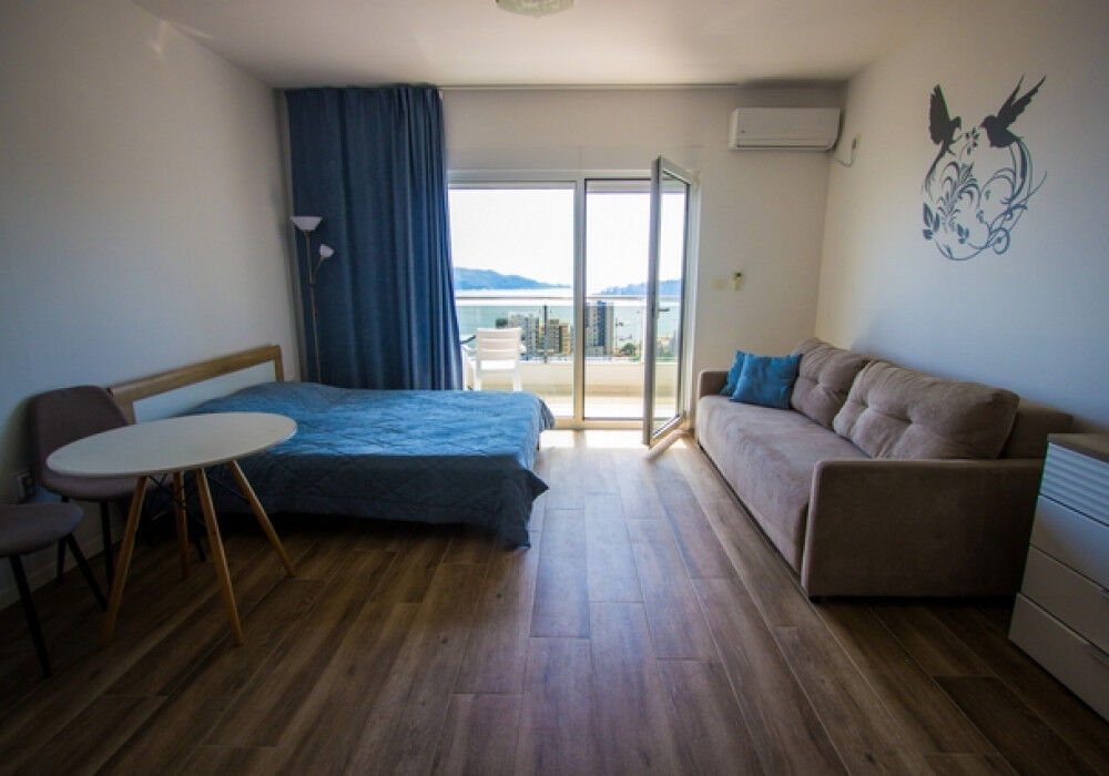 Description Budva Riviera, Rafailovici district. Studio apartment Distance to the sea 350m Sea view The area is 34 sq.m. There are only one bathrooms The fourth floor The house is equipped with an elevator The apartment is for sale fully furnished and ready to move in Structure: Entrance hall, living room with kitchen and dining area, bathroom with shower and toilet, terrace with magnificent sea views Free outdoor Parking for the residents of the house – in front of the building The Rafailovici area is one of the most popular places on the Adriatic. Real estate is in great demand here – both during the tourist season and all year round. This apartment has a high rental potential, and will bring a stable income. We provide real estate management services, and we will gladly help you rent out your apartment. In addition, this location is very popular among locals who appreciate comfort. Therefore, this apartment is also ideal for family holidays and permanent residence. Nearby there is Rafailovichi beach, Kamenovo beach, a promenade area with many restaurants and cafes, travel agencies. There are also two grocery supermarkets, a tourist information center, and a bus stop. Budva is 3 km away, and Tivat Airport is 25 km away.