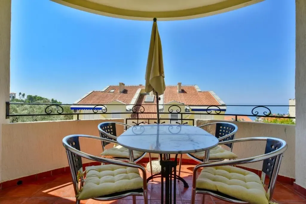 Sale ID7479. A apartment is offered, located in Sveti Stefan, just 5 minutes from the sea. This bright two-room apartment with a sea view is on the third floor and has an area of 70 m². Fully furnished and includes a living room with a dining area, kitchen, hallway, two bedrooms, bathroom, and terrace.