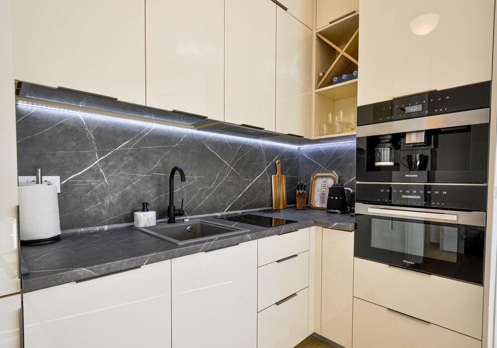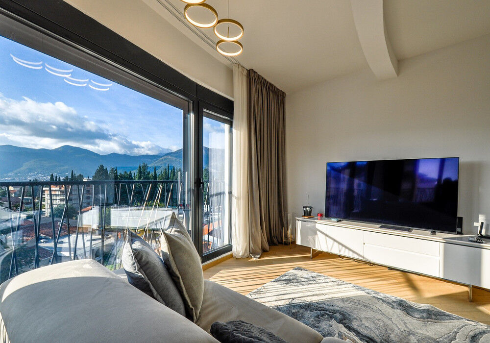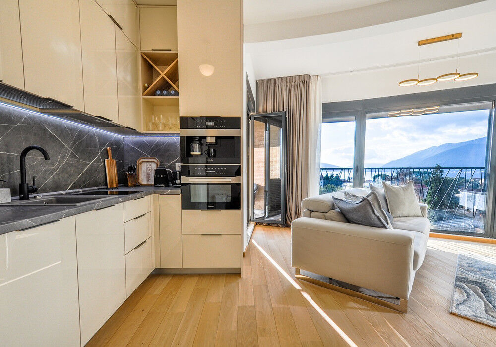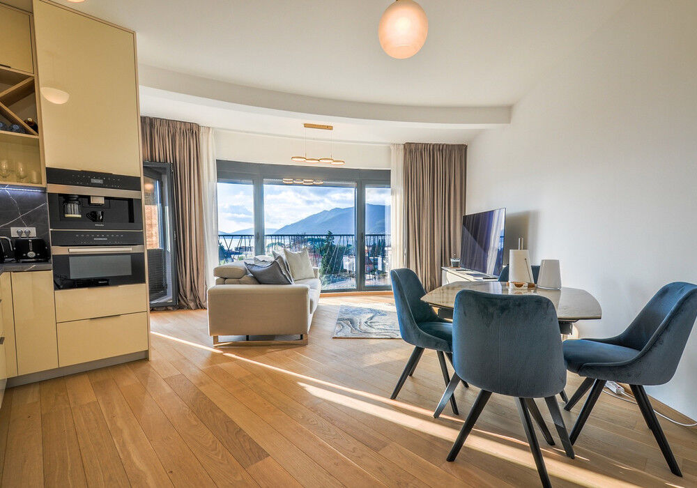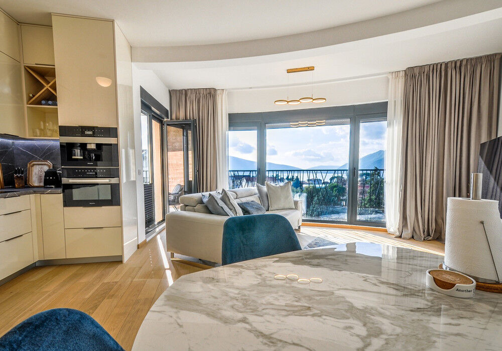 Tivat, Selyanovo district. Two bedroom apartment in one of the best areas of Tivat The house was built at the end of 2020 Distance to the sea 250m Sea view Fourth floor The house is equipped with an elevator The apartment is sold fully furnished The sale price includes one parking space The territory of the closed type Children's playground Near the house there are several excellent new cozy cafes and restaurants Panoramic windows and high ceilings High-quality furniture, plumbing and kitchen equipment Structure: Entrance hall, living room with kitchen and dining area, two bedrooms, two bathrooms with showers and toilets, large terrace with garden furniture All necessary urban infrastructure is within walking distance: kindergarten, school, large Playground, shops, pharmacy, cafes, restaurants. One of the best beaches of Tivat Waikiki can be reached in 7 minutes, Porto Montenegro and the city center in 15 minutes. The road to the sea – on flat terrain The entire urban infrastructure is within walking distance, the location is popular with both locals and wealthy tourists from all over the world We provide real estate management services, and we will help you rent out your apartment. In addition, this apartment is ideal for permanent residence and family holidays Real estate by the sea with a competent location is now considered as investment objects with year-round (and not seasonal) profitability. Investing in real estate on the seashore has become more profitable than ever.