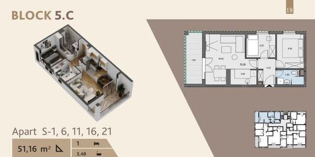 Two-bedroom apartment for sale in Tivat, Seljanovo settlement, 52m2. The apartment is located in Lamela C of a beautiful complex, only 500m2 from the beach. It is on the 3rd floor and has a view of the sea. The complex is only 1.5 km from Porto Montenegro. The apartment has a permanent view of the sea. The building will be completed in March 2026.