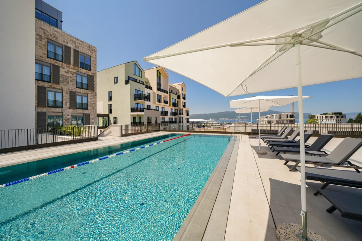 For sale: ID 7442. This 63 m² apartment features a spacious living area combined with a kitchen, a bedroom, a bathroom, and a terrace overlooking the pool and sea. The apartment is fully furnished and ready for occupancy. The building includes an underground garage. Apartment owners have full access to the 20-meter pool and all hotel amenities, as well as the specialized SIRO fitness center. State-of-the-art equipment, highly qualified trainers, yoga and other classes, and an innovative "experience-box" wellness center will impress even the most discerning fitness enthusiasts. Gastronomy, shopping, entertainment, relaxation, and rejuvenation—you'll find everything you could wish for here. All the architectural elements of the neighborhood encourage social activity. The central square is a focal point and meeting place, blending urban lifestyle with natural elements. Boka-Place includes a variety of shops, cafes, a fitness center, a spa complex, a cinema, and recreational areas. Buyers of apartments in the new residential complex will have the rare opportunity to become members of the unique international Porto Montenegro community and a host of associated benefits.