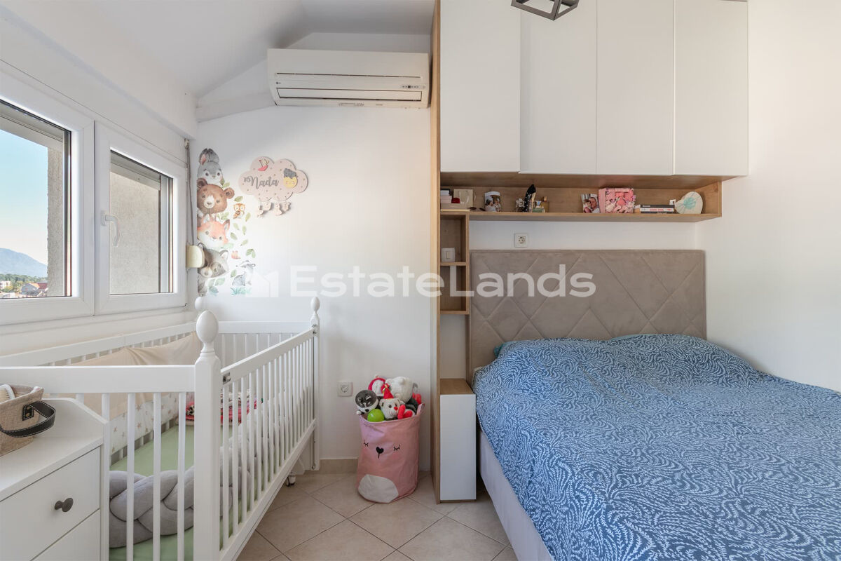 The apartment is located right in the heart of Tivat, in a quality building with an elevator. From bedroom and terrace, there are beautiful views of Mount Lovćen and partial sea view. The apartment is sold fully equipped with furniture and appliances. Ideal for both permanent residence and investment. 🛋 Layout: • Separate kitchen • Living room with access to the terrace • Bedroom • Bathroom • Terrace • Entrance hall 🏙 Infrastructure: • 1–2 minutes' walk to shops, banks, post office, beauty salons, restaurants, and cafes • 3–5 minutes to the sea and promenade • 10–15 minutes to the kindergarten, municipal school, music school, and KSI English school • City parking with the option to get a resident parking permit 📄 Clear documents, 1 owner, fast transaction 💬 Contact us for more information or to schedule a viewing