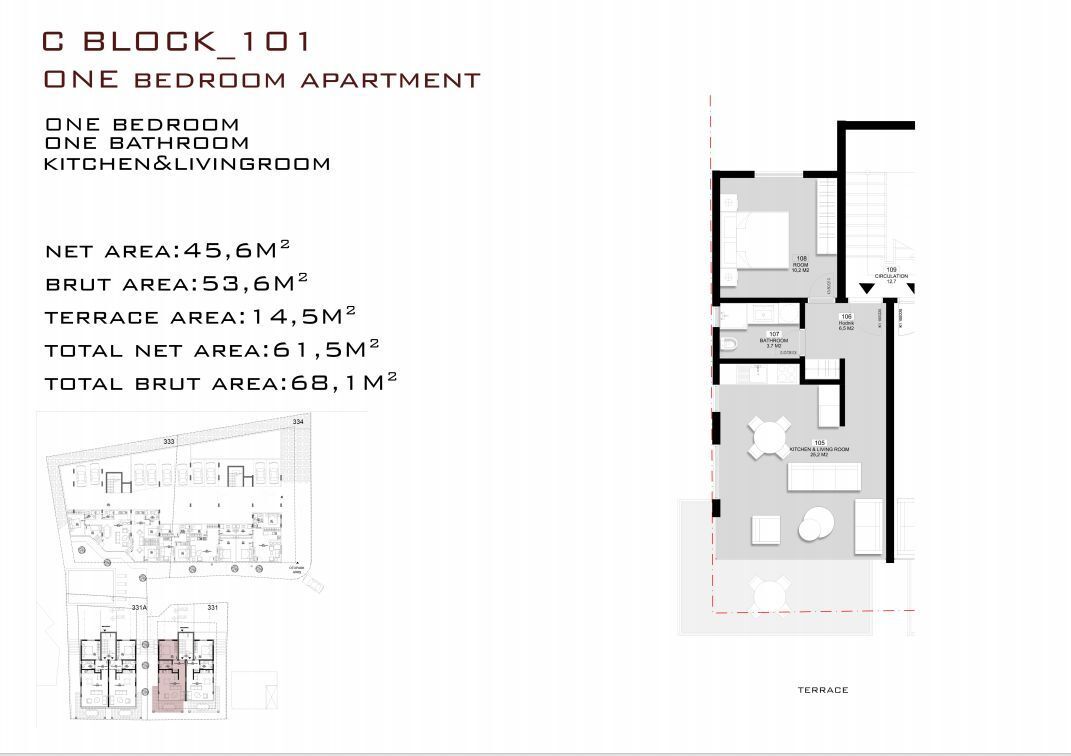 Sale of a one-bedroom apartment 57.82m² (45.82 m² living space + 12 m² terrace) in a new complex with swimming pool and parking – Kava, Tivat