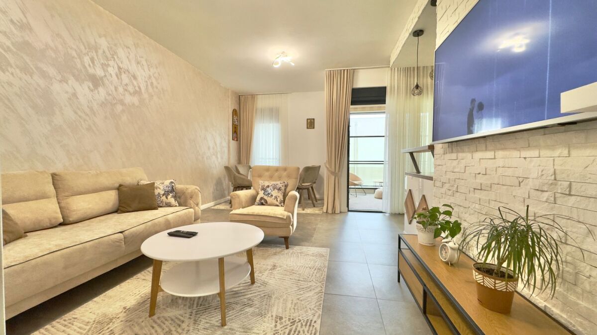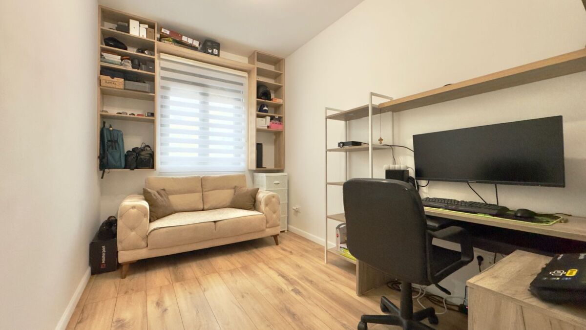A beautifully furnished and thoughtfully designed three-bedroom apartment (2 bedrooms + 1 office) located in the well-connected and fast-growing residential area of Kava. Positioned on slightly sloped terrain with excellent infrastructure, this location offers quick access to Tivat Airport, Porto Montenegro, supermarkets, schools, and all essential amenities The apartment features 75 m² of modern interior space, tastefully furnished with contemporary décor and high-quality materials—ready for immediate move-in. The south orientation ensures plenty of natural light throughout the day, creating a warm and comfortable living atmosphere The terrace is an enclosed type with movable glass panels, allowing the space to be fully opened when desired 🏡 Layout: ◦ 2 bedrooms ◦ additional room used as an office ◦ open-plan living room with dining area ◦ fully equipped modern kitchen ◦ bathroom ◦ terrace 🚗 Closed garage space: 14 m² (included in price) • Additional outdoor parking spot