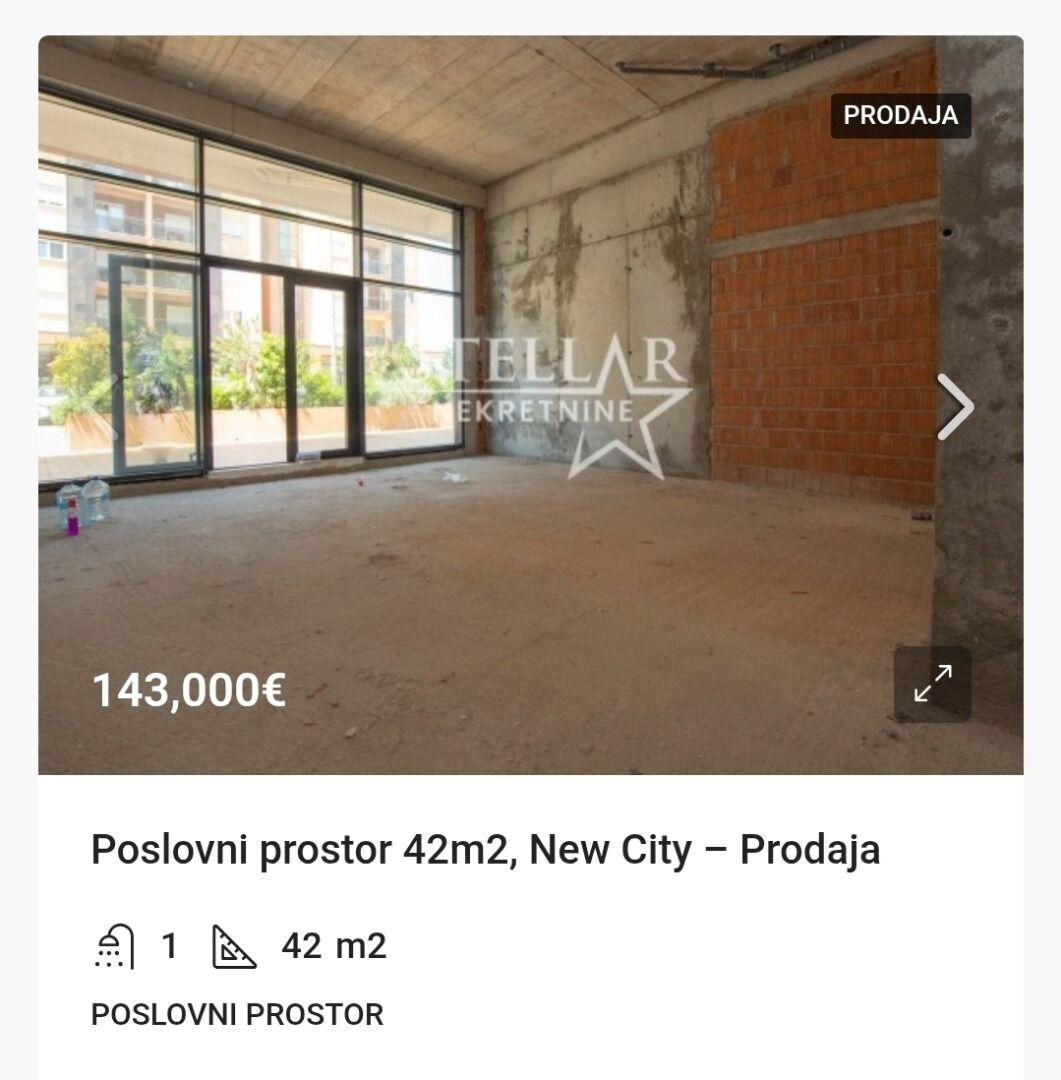 About the space: A commercial space is for sale in new buildings in the New City complex. The space is in the gray phase. It can be modified and shaped according to your preference. It is characterized by a height that can be utilized to create two levels in the space. It is suitable for various purposes, such as a salon, boutique, office, cafe bar, or something else. About the location: This location is an extended arm of already established neighborhoods, which are located around shopping centers and business centers in the city. The first neighbors are City kvart, Master kvart, Central point, and so on. An active economic flow is guaranteed, and it is a reliable location for business. The neighborhood is still under construction, so it will only gain significance over time. Property ID M654 +382 69 618 445