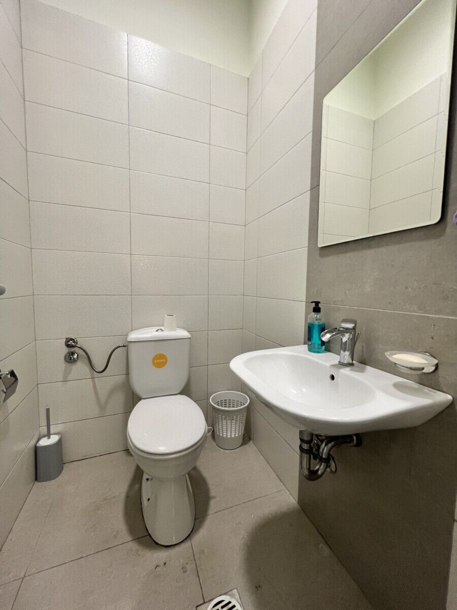 For sale is a commercial space with an area of 155 m², which spans two levels – ground floor and basement. The space has two bathrooms and a kitchen, making it functional and suitable for various purposes, such as offices, clinics, or small businesses. The commercial space also comes with two parking spaces. Price: 305,000 €.
