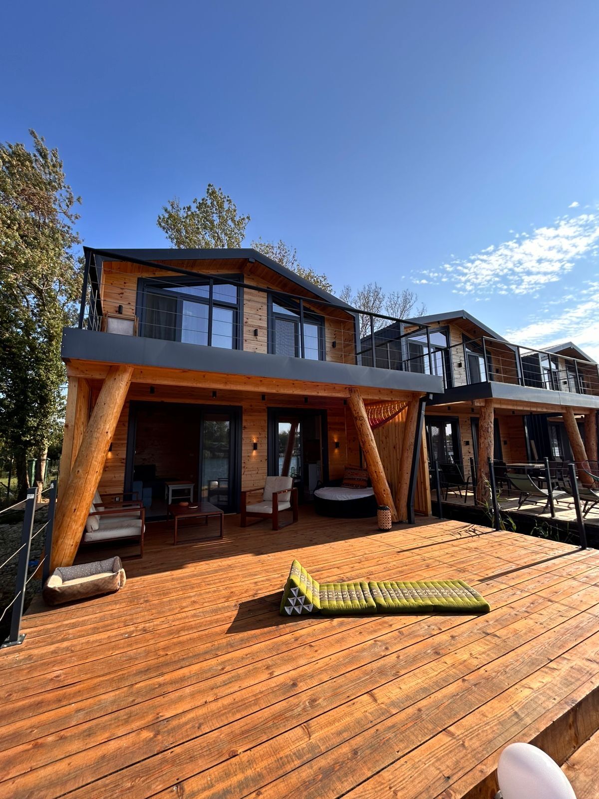 I am selling an uninhabited fully furnished weekend house on Ada Bojana, which consists of two bedrooms, a living room with a kitchen, two toilets, a storage room, three terraces, as well as a dock for a larger vessel. The weekend house has its own private road and parking for multiple vehicles.