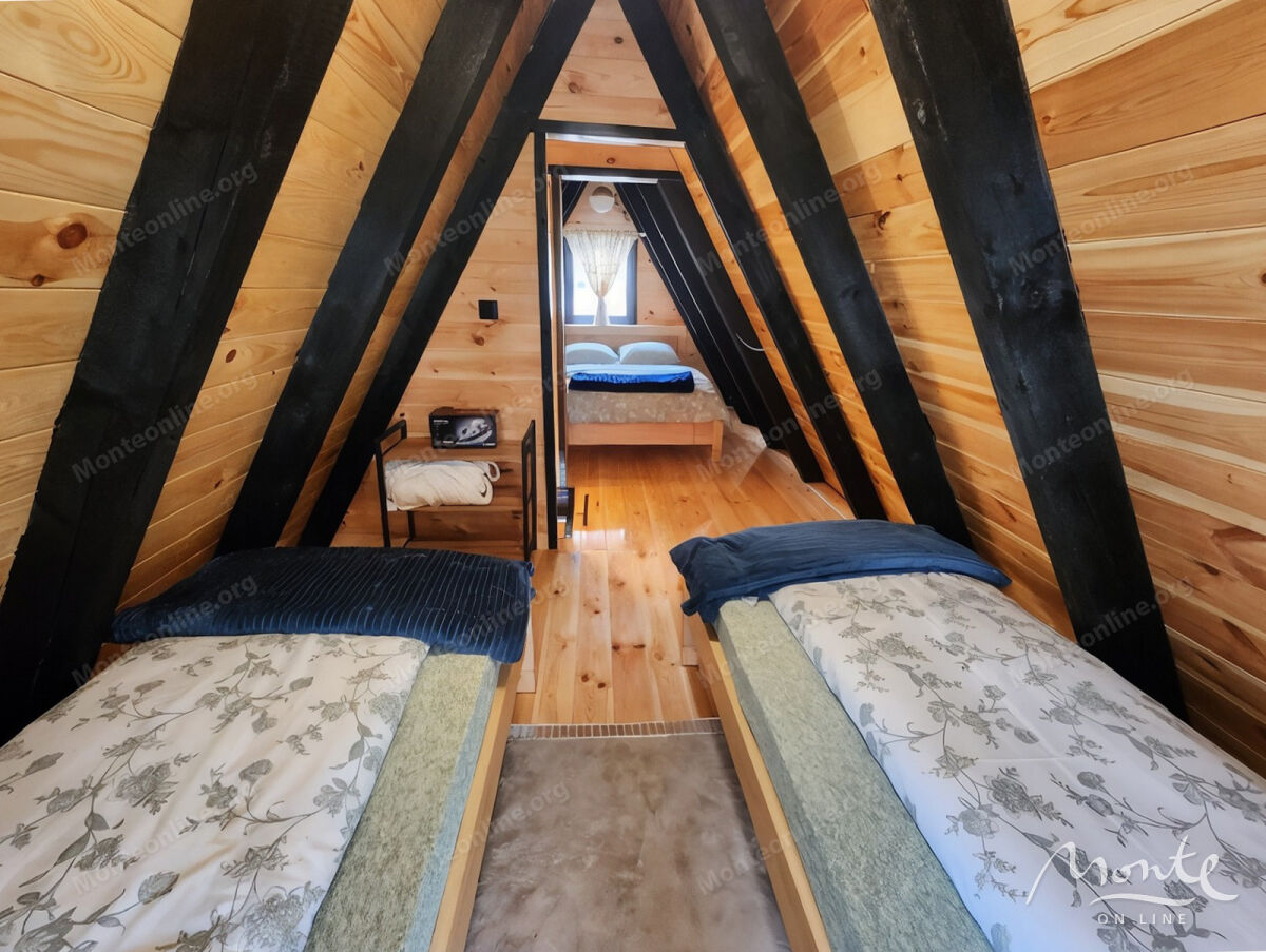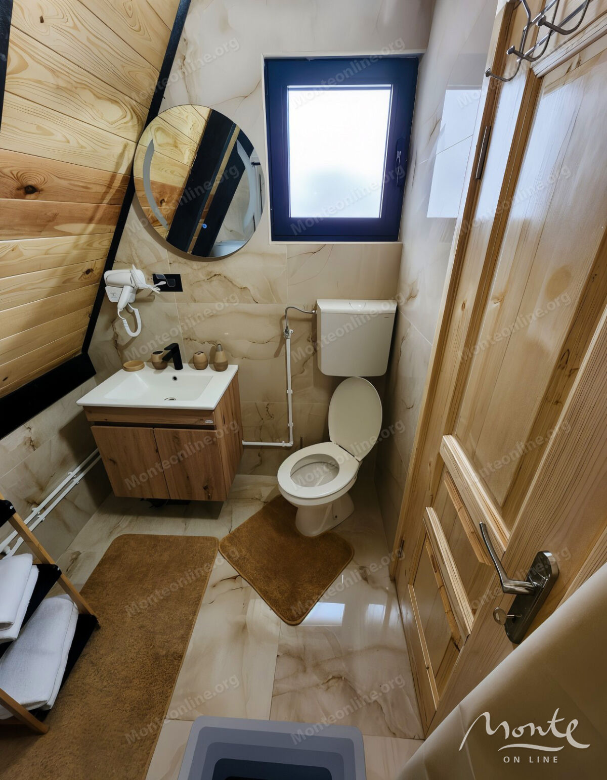 A new house is for sale in the picturesque village of Borye, just a few minutes' drive from the center of Zabljak. The area of the house is 60 m², and the plot is 300 m². The house was built in 2023 and is fully ready for occupancy. The layout includes a living room with panoramic windows, a kitchen with a dining area, a spacious bathroom, and two bedrooms on the second floor. The house is sold fully furnished and equipped with modern appliances, a heating system, and air conditioning. The plot has its own parking space, a separate entrance, and a relaxation area with views of the mountains and pine forest. The interior is designed in alpine style - a combination of natural wood and stone creates a feeling of warmth and coziness at any time of the year. This is an excellent offer for both personal recreation and investment in short-term rentals. The Borye area is known for its tranquility, clean air, and proximity to natural attractions. All documents are in order, 1/1 ownership.
