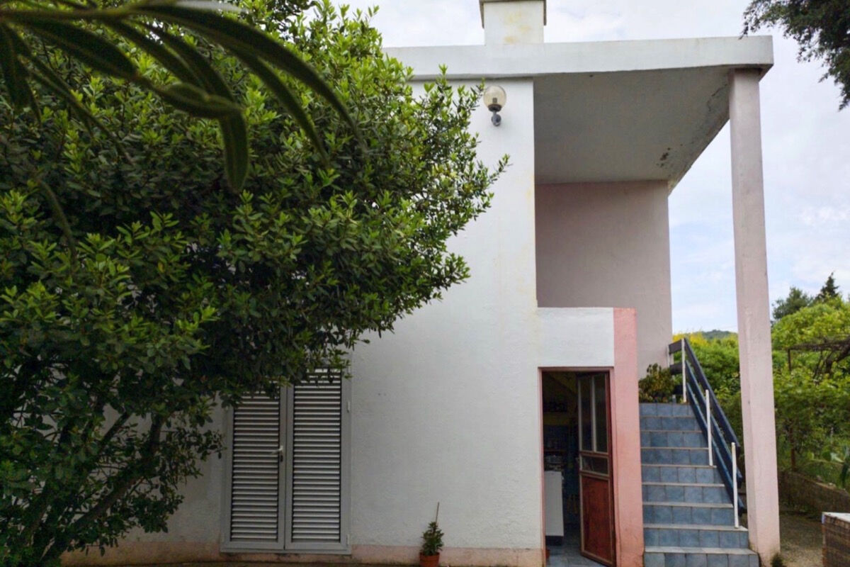 Charming house in Dobra Voda with a beautiful garden. Located just 800 meters from the wonderful Veliki Pesak beach. The plot is 440 m2 with trees and greenery. The house has an area of 200 m2 over two floors. On the first floor, there is a kitchen, 2 bedrooms, a bathroom, a terrace, a summer kitchen, and a garage (which can be converted into a bedroom or commercial space). On the second floor, there is a hall, three bedrooms, a bathroom, and a large terrace. This property represents a great opportunity. With a little cosmetic renovation, it could become a dream villa. It can also be reconfigured into small rooms for rental.