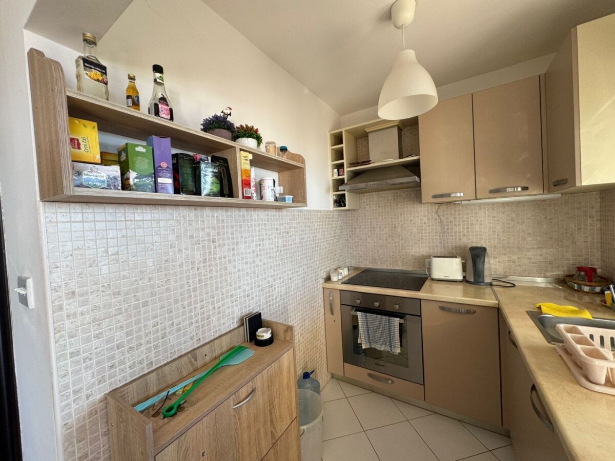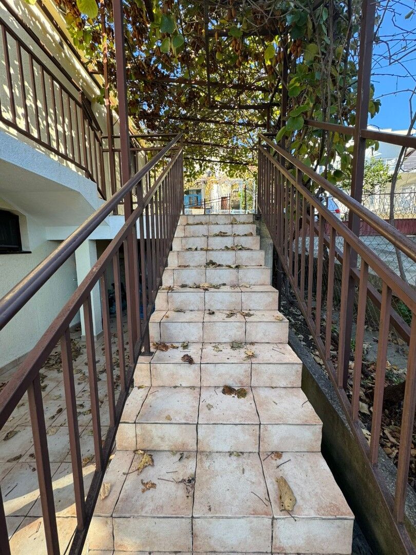 A two-story house in Dobra Voda Price: €180,000 A cozy two-story house in the Dobra Voda neighborhood is for sale. It's an excellent choice for family living, vacation rentals, or as a rental property. Main characteristics: Plot area: 199 m² Total area of the house: about 130 m² Number of floors: 2 floors Two separate entrances - one for each floor Beautiful sea views from every floor Layout: 1st floor: Living room Bedroom Kitchen Bathroom Spacious closed terrace with sea view 2nd floor: Kitchen combined with living room (oven, air conditioning) 2 bedrooms Bathroom Large open terrace with panoramic sea views Additionally: Storage room in the basement (~15 m²) Parking in the yard Landscaped courtyard with fruit trees: kiwi, tangerines, pomegranate, olive Documents: The house is legal One owner , documents in order A quiet and green place, just a few minutes' drive from the sea.