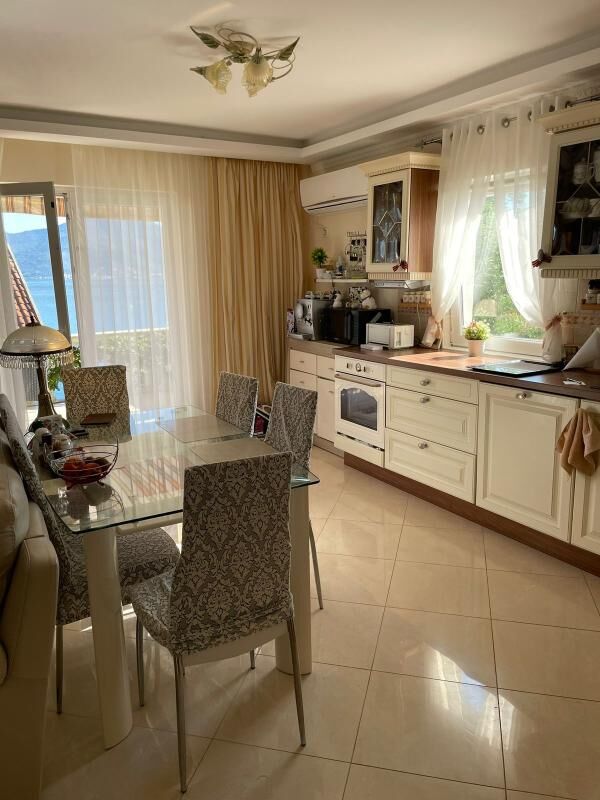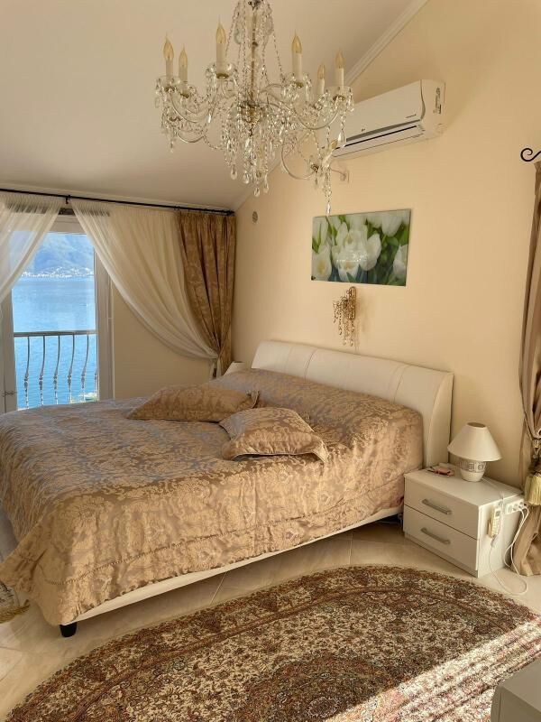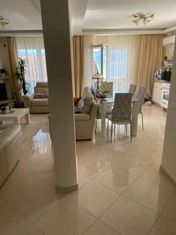 A large house with an area of 200m2 on a plot of 286m2 in the village of Krasici. The house has 3 levels, a beautiful manicured garden with a place for a barbecue, its own covered Parking space. High-quality beautiful furniture and all necessary appliances. About 49m2 + terraces: guest apartment (terrace with sea view); utility room and workshop. 1st floor 48m2 + terrace: living room with kitchen and dining areas, a working fireplace, a spacious terrace with stunning views of the Tivat Bay. 2nd floor 47m2 + terrace: internal staircase; 2 bedrooms (one converted into a study with a sofa bed, one of the bedrooms has a French balcony). All windows offer panoramic sea views. A walk-in closet and a large bathroom. The area of the plot around the house is 210 m2, a water pump that maintains constant good pressure throughout the house, a backup water tank of 10 m3. Non-pumped septic tank A great investment option for renting out or for permanent residence of a large family. The documents are in order.