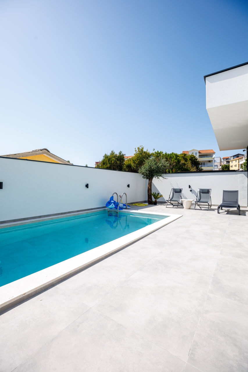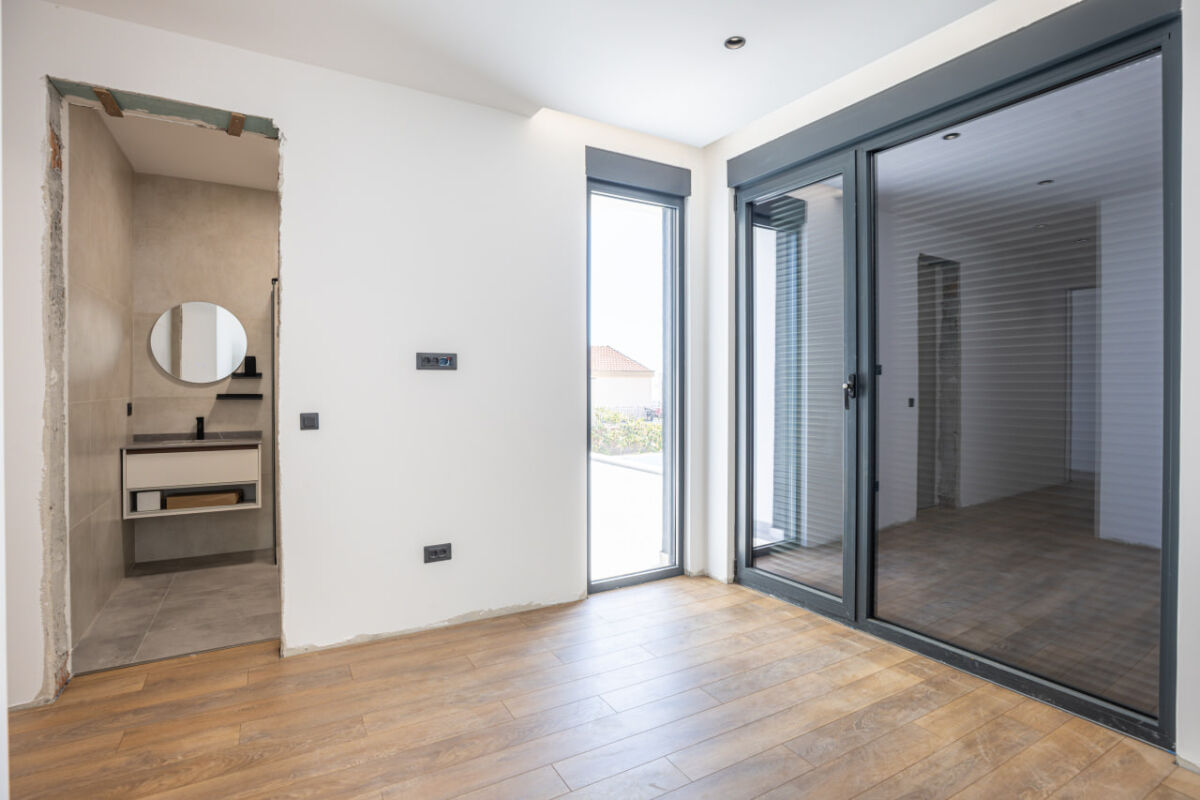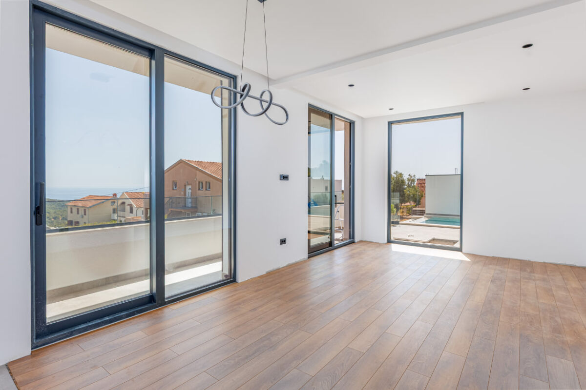 Modern villa with sea view at the price of apartments - Krimovica New house with stunning panoramic views of the Adriatic, located above the beaches of Jaz, Trsteno, and Ploče. Spacious layout and huge rooftop terrace make this house an ideal choice for seaside living. • Total area of the house - 110 m² • 3 bedrooms, including a master bedroom with a walk-in closet and en-suite bathroom • Underfloor heating throughout the house • Spacious living room with kitchen and access to the yard • Garage and technical room (40–50 m²) • Pool and yard (about 50 m²) • Rooftop terrace - 160 m² with sea views and sunsets Krimovica - a quiet and picturesque area near Budva. The beaches of Jaz, Trsteno, and Ploče are just a few minutes away. An ideal combination of seclusion and proximity to infrastructure and the sea. Price: 430,000€