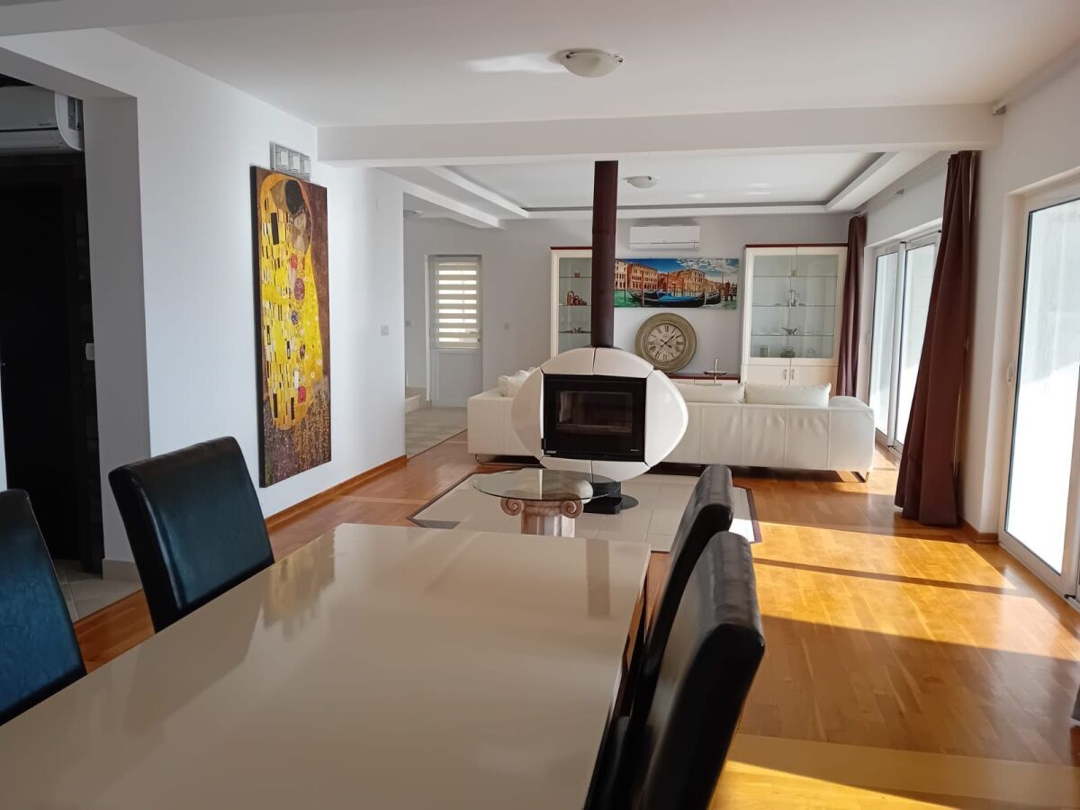 A luxurious modern villa for sale, located in the peaceful and green area of Krimovica. Designed for year-round living, this villa offers exceptional comfort, stunning sea and mountain views, and a perfect blend of elegance and functionality. The property sits on a 450 m² plot, with a total building area of 380 m². It includes a private parking area for three cars and a large swimming pool of 90 m³ with a spacious 13-meter solarium terrace. The villa has been submitted for the legalization process, ensuring it is in the process of obtaining full legal status. The villa is fully furnished and thoughtfully designed. It features four comfortable bedrooms, each with its own terrace and sea view, as well as four modern bathrooms with natural ventilation, insect screens, and electric radiators. The spacious 13-meter living room combines the kitchen, dining, and TV areas, enhanced by a modern fireplace and large storage space. From the living room, there is direct access to a covered 13-meter terrace that leads to the solarium and the pool area. On top of the villa is a large rooftop solarium offering breathtaking panoramic views of the Adriatic Sea and surrounding mountains—an ideal spot for relaxation and privacy. Additional amenities include another bathroom and a separate laundry room. LG air-conditioning units are installed throughout the villa, along with two water heaters, ensuring maximum comfort. The property is located only 500 meters from the sea, at an elevation of about 200 meters, providing beautiful views and a pleasant climate. Nearby beaches include Trsteno, Ploče, and Jaz (2–4 km away). A supermarket and gas station open year-round are also close by. Budva is 9 km away, while Kotor and Tivat are approximately 23 km from the property. Airports in Tivat, Podgorica, and Dubrovnik are easily accessible, making this location highly practical and attractive. This villa is a perfect choice for those seeking a luxurious, spacious, and fully equipped property on one of Montenegro’s finest coastal locations—ideal for living, investing, or renting throughout the year.
