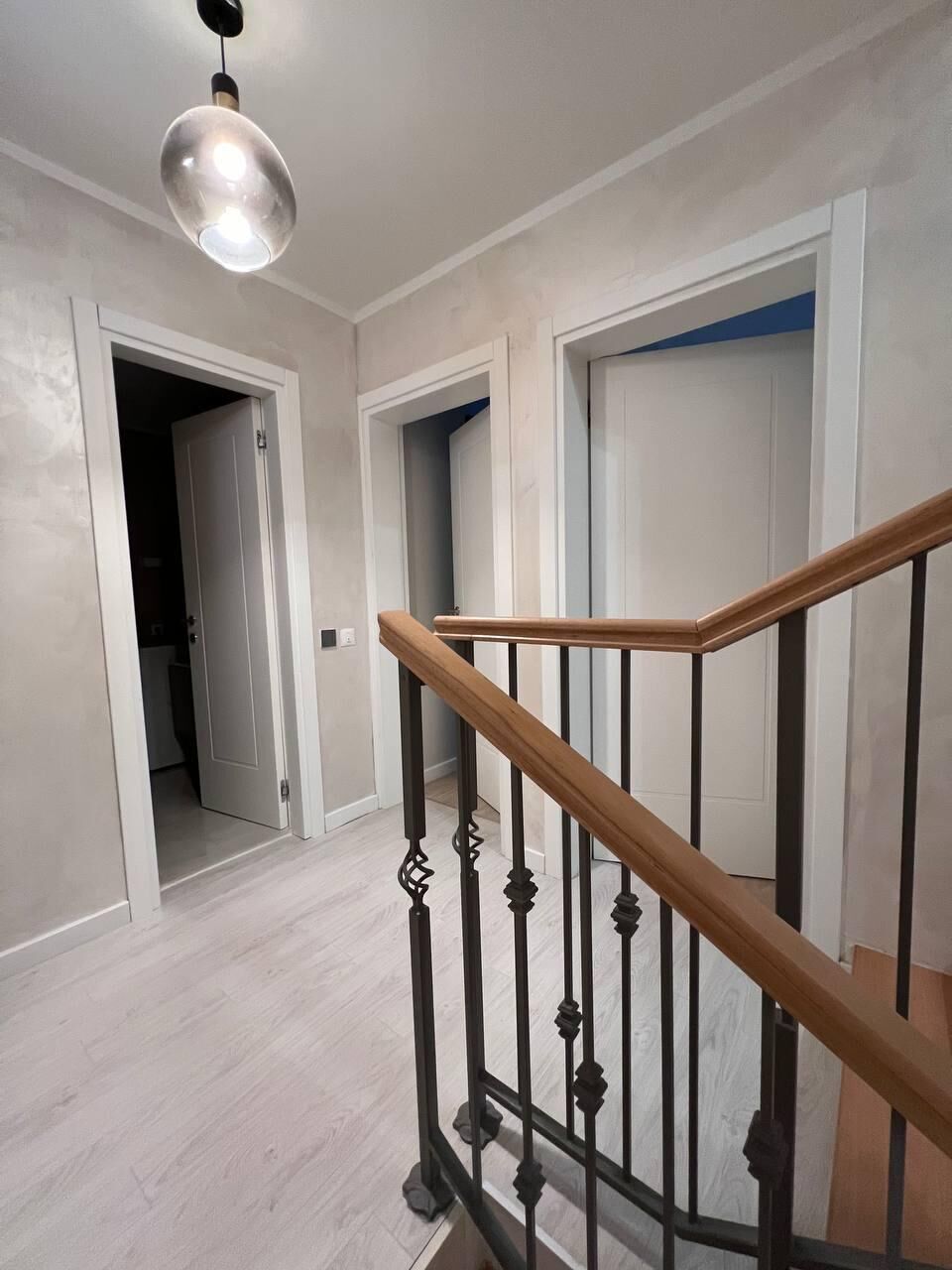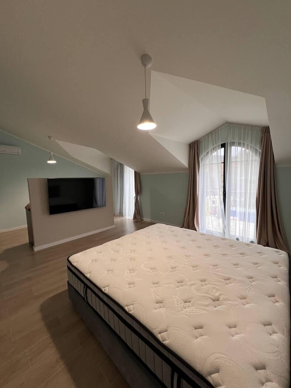 A house for sale in a gated complex with a swimming pool near Budva. The property is 176 sq m, spread over 3 floors, and features a private, well-maintained courtyard. Newly renovated, it features modern furniture and appliances. It features three bedrooms, two bathrooms, a walk-in closet, a spacious living room with a kitchen and dining area, and large terraces. The complex is located in the quiet village of Lastva, a 5-minute drive from Budva! Price: €386,000