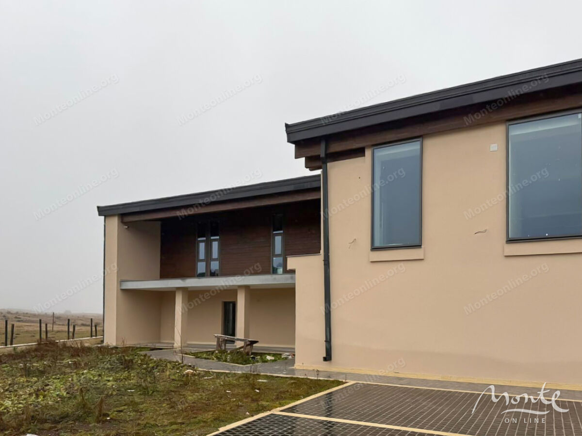 A unique villa of premium class, unparalleled in scale and concept, is offered, located in one of the most sought-after areas of Žabljak, in the settlement of Motički Gaj. This is a quiet, fully residential location with new modern houses, ideal for those who value privacy, comfort, and proximity to nature. • Total area of the villa: 1283 m². • Plot: 5168 m². The villa consists of two levels. On the upper level, there are four spacious bedrooms, each with its own bathroom and access to panoramic views. The lower level includes two independent apartments, each with a separate entrance, making the property perfectly suitable for both a large family and premium-class rental. Additionally, there is a space planned for a sauna or SPA area, as well as spacious parking and large outdoor areas. The house was created as a high-end project for year-round living and recreation. High ceilings, massive wooden beams, large panoramic windows with views of Durmitor, natural stone, premium finishes, and spacious layout solutions create a sense of space, light, and a special atmosphere of a mountain resort. The size of the house allows for several usage scenarios: • luxurious family residence; • boutique chalet for premium-level rental; • a combination of living and generating income from the two lower apartments.