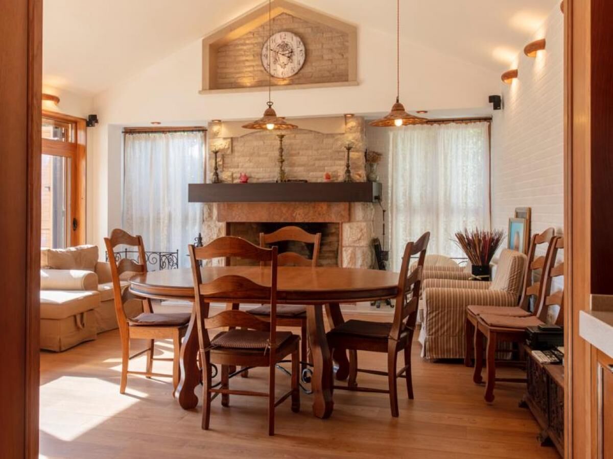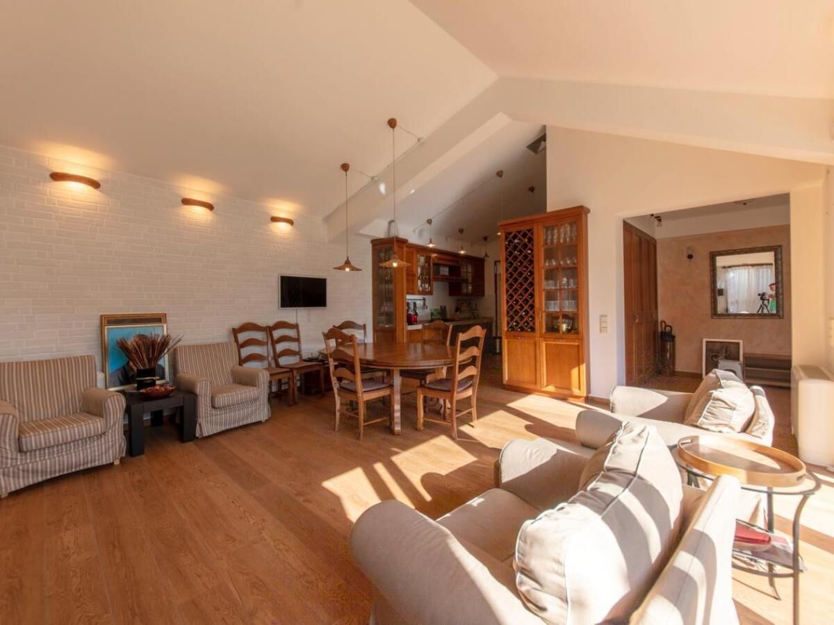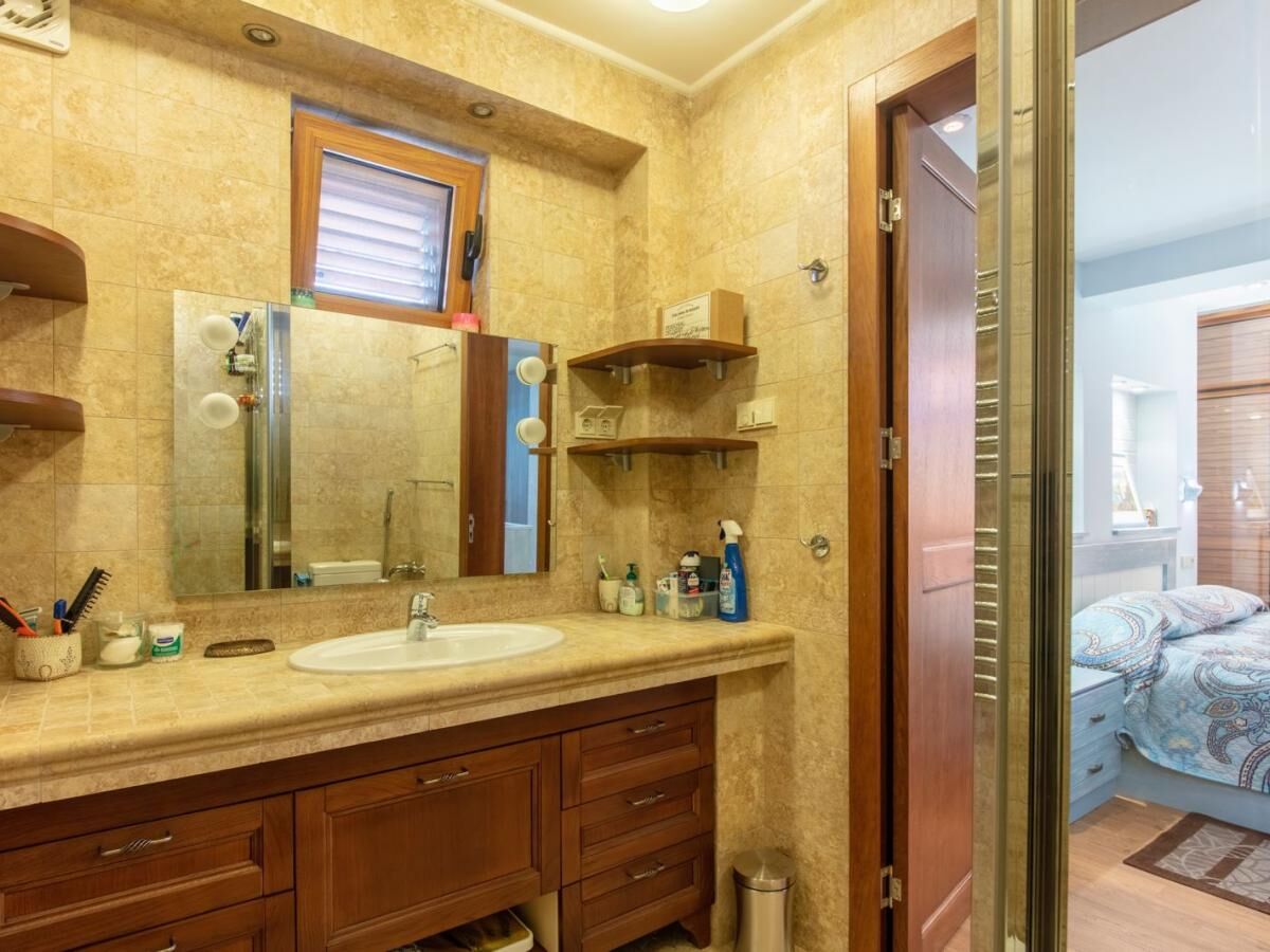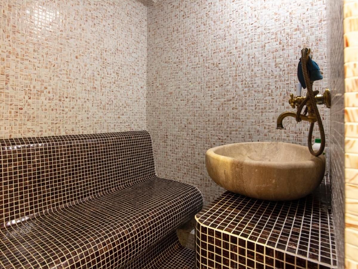Two-story villa with an area of 186 m2, located on a plot of 364 m2, with a garage of 30 m2. On the first floor of the villa are: a large kitchen-dining room with a wood-burning fireplace and a relaxation area, equipped with all necessary household appliances (electric and gas stove, refrigerator, oven, wine cabinet) guest toilet corridor two bedrooms, each with its own bathroom and a shared relaxation room (living room) Turkish sauna (hamam) internal courtyard for dining and barbecues (wrought iron roof, water and electricity supply) On the second floor of the villa are: kitchen-dining room, equipped with all necessary household appliances (electric stove, refrigerator, oven) two bedrooms, with two toilets and a shared relaxation room. The house is equipped with an air conditioning system, underfloor heating, a generator, and an additional backup water supply system. The garage is a separate building, with access from the street. The territory of the house is fenced, with a lawn planted around the house with flowering and fruit plants (palms, magnolias, kumquat, citrus).