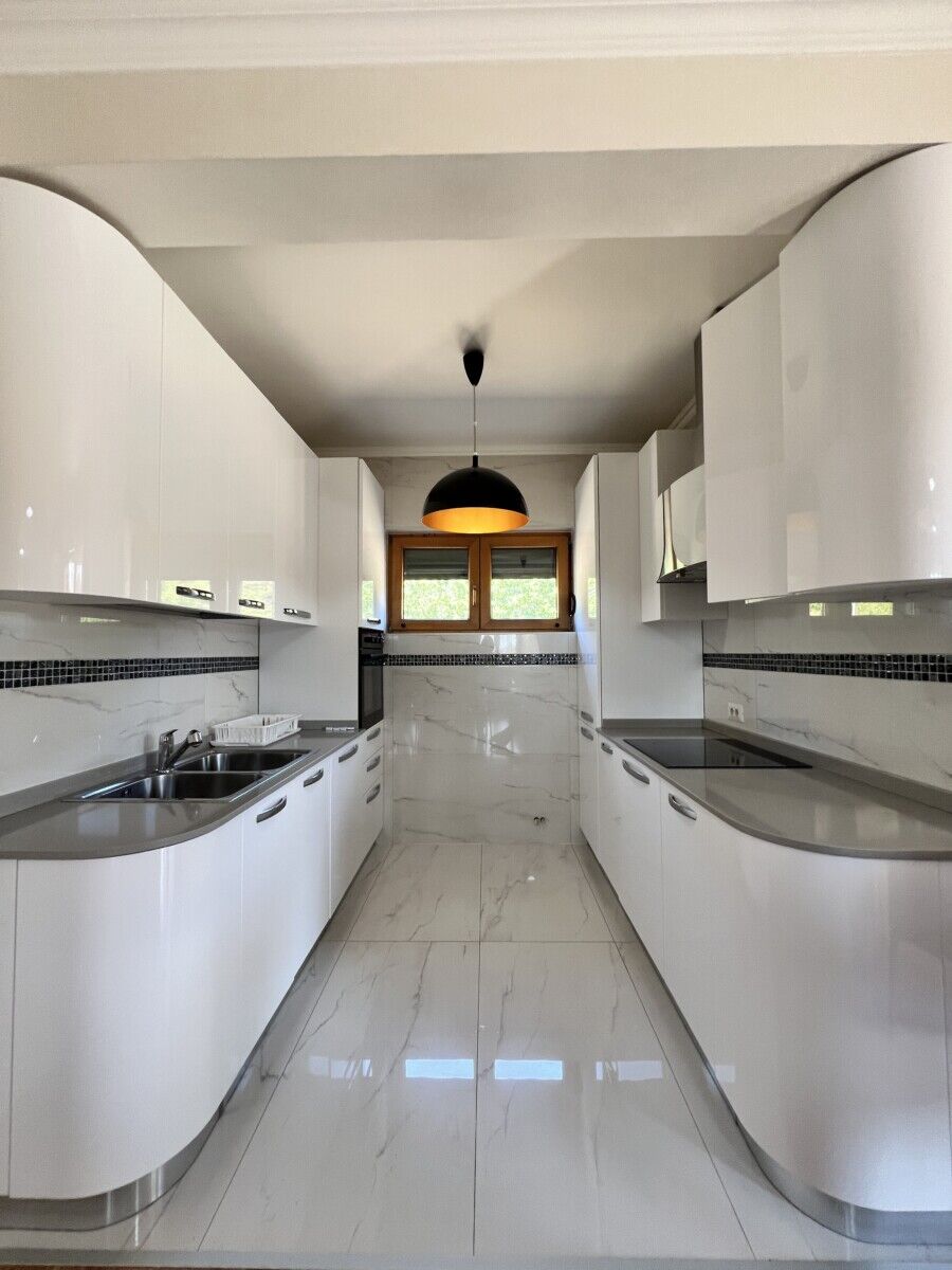 A three-bedroom house is for sale in Rogami, with an area of 200 m², on a plot of 2,406 m². The house is modernly furnished, equipped with central heating, and includes a garage and a storage room. It is located in a very quiet and pleasant environment, ideal for family life. Price: €360,000. Ownership is clear.