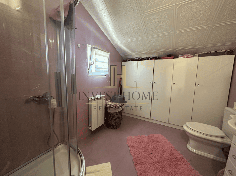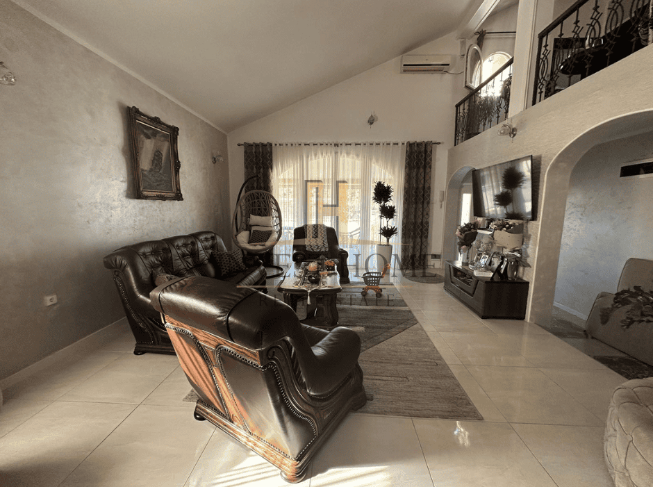 A house is for sale in Rogami, 300m2, on a plot of 520m2. The house consists of two separate apartments, a three-room (ground floor and first floor) and a one-room on the ground floor, with a garage of 35m2. Both apartments are fully equipped. The house has central heating on pellets and is fully air-conditioned.