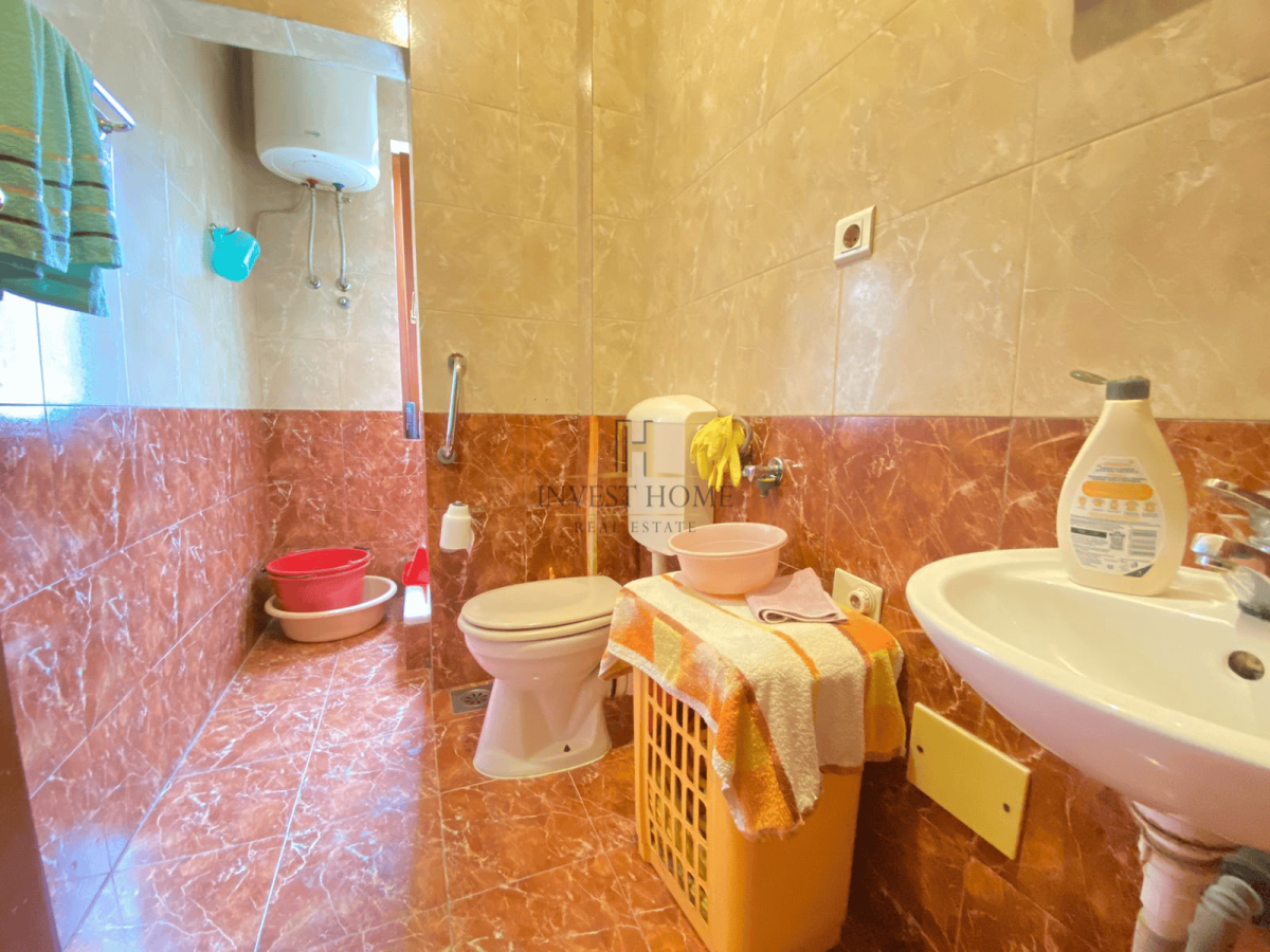 For sale are three apartments of different structures: three-room (137m2, on the first floor), one-room (41m2, on the ground floor), and studio (33m2, on the ground floor). The building is located in Donja Gorica near the church. The property also has central heating and 275m2 of yard.