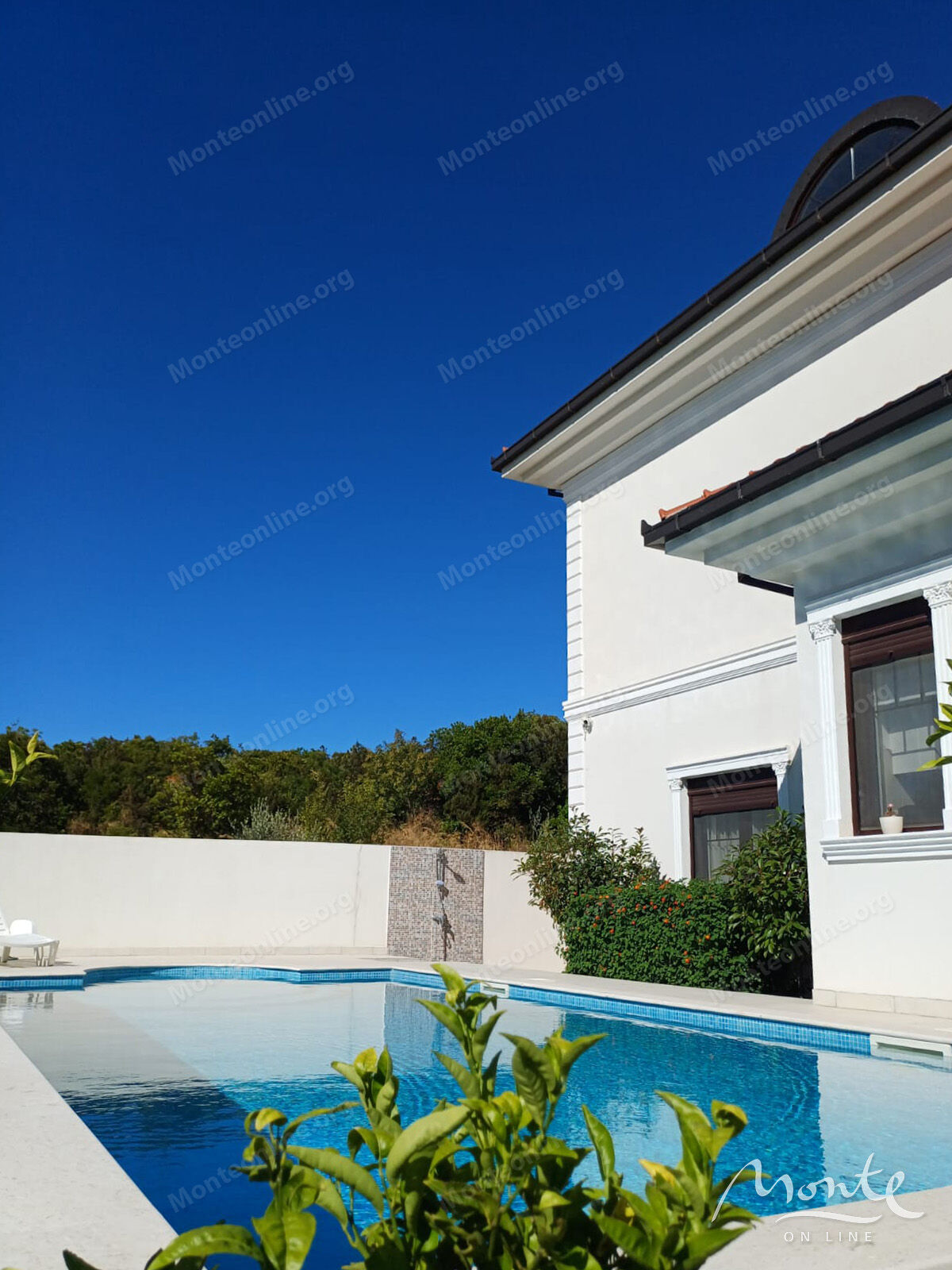 A luxurious villa with an area of 277 m² is located on a plot of 494 m² in the prestigious area of Radovići, Luštica. The first line to the Luštica Bay golf courses, as well as panoramic views of Mount Lovćen and across the bay to Porto Montenegro, create a unique atmosphere of seclusion and elite relaxation. Key features: • total area of the villa: 277 m²; • living area: 211 m²; • plot: 494 m²; • garage for 1 car + additional parking space on the premises; • private pool - 8.5 m × 4 m; • 3 spacious bedrooms (master bedroom with private bathroom and its own terrace, additional bedrooms with access to a shared bathroom on the second floor); • guest toilet on the first floor; • living room: spacious area with a fireplace, combined with the kitchen and dining room; • kitchen and dining room: modern design, high-quality appliances; • ceiling height: 3.20-3.50 m; • terraces: terrace by the master bedroom, large terrace on the first floor with access to the garden and pool. Additional advantages: The villa is fully furnished and ready for occupancy. Bright interior finishes, marble floors, and high ceilings. Heating and cooling using an air-water heat pump. Landscaping, fencing, and greenery around the perimeter of the plot. Excellent location, within walking distance to restaurants, beaches, and the infrastructure of Luštica Bay.