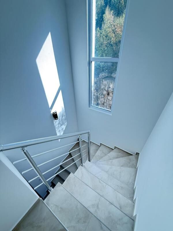 Bar, Ratac — legal house of 150 m² with a panoramic sea view, plot of 555 m², swimming pool, and large parking area. Description House in the suburb of Bar (Ratac) on a plot of 555 m², 3 cascades: lower — parking, middle — swimming pool, upper — house. Distance to the sea — ~1,400 m. Dead-end street — quiet and private. Communications • Water — delivered, tank 30 m³ • Sewage — septic • Living room — fireplace; 2nd floor — wall radiators Layout • 1st floor: living room with kitchen, bedroom, bathroom, storage room • 2nd floor (internal staircase): 2 bedrooms, 2 bathrooms, terrace with panoramic sea view