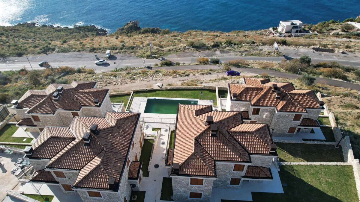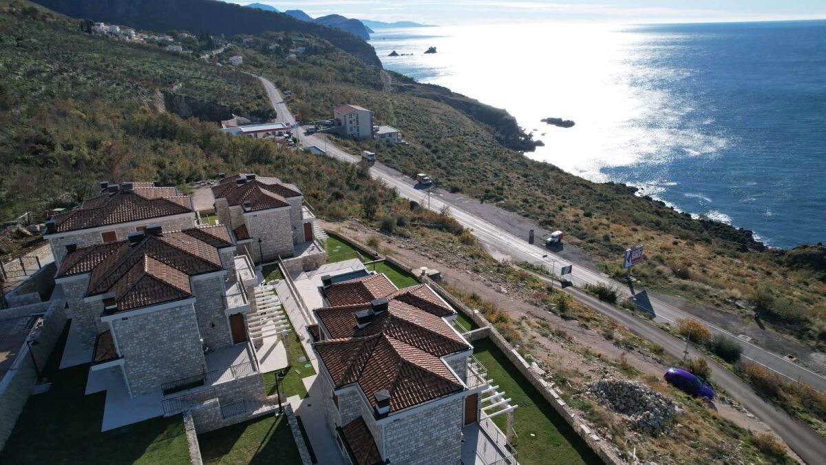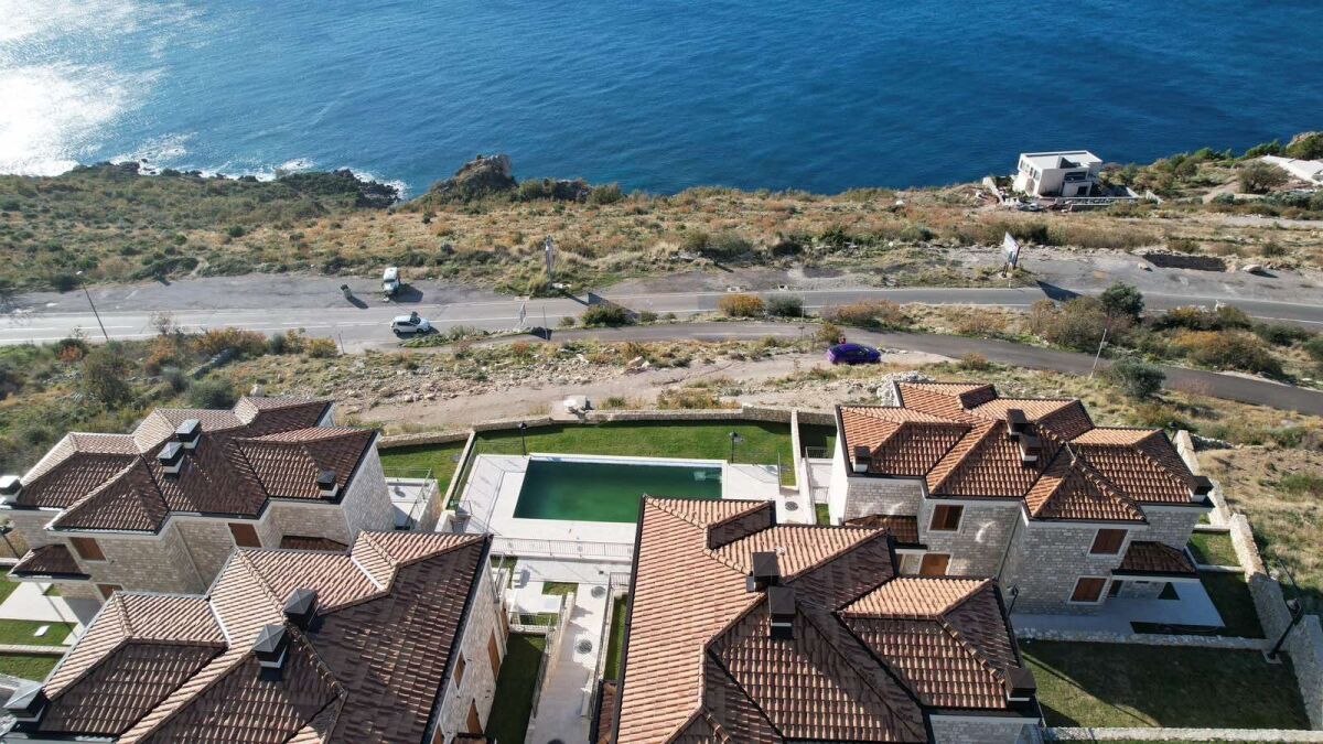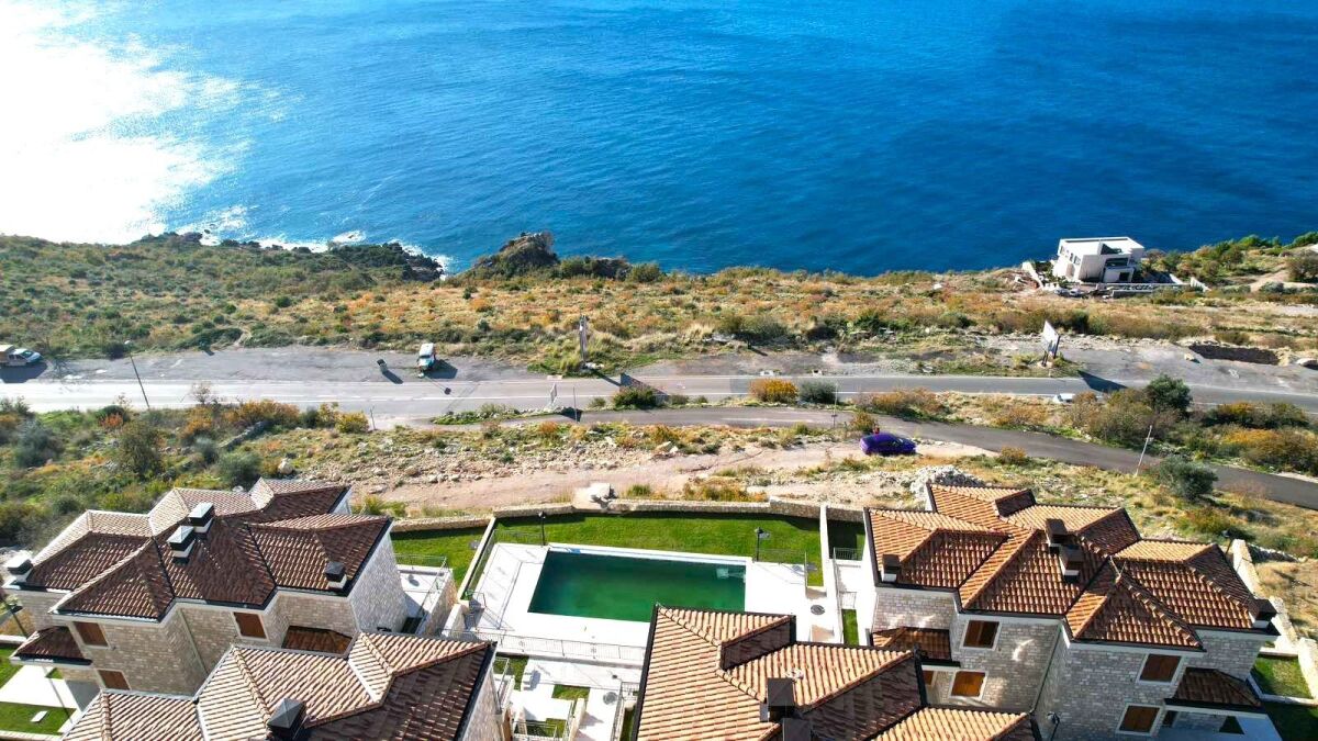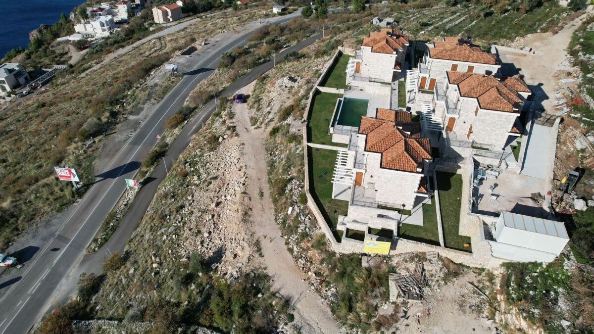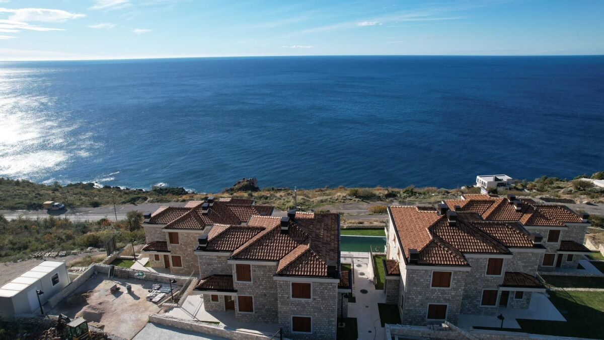 Real Estate, Montenegro For sale: a complex of 8 townhouse units housed in 4 villas, currently in the final stages of construction, located in Reževići, Budva. Each unit has an area of 105 m² and includes 2 or 3 bedrooms, 2 bathrooms, an additional WC, a kitchen, a dining room, and a spacious terrace offering stunning sea views. Each townhouse comes with a private parking space and access to a shared pool. This modern complex is situated in an exclusive location above the main road, providing a unique blend of privacy, natural surroundings, and breathtaking panoramic views of the Adriatic Sea. The authentic ambiance of Reževići adds to the charm of this area. The distance from the complex to Budva is approximately 12 km, while Petrovac, the nearest urban center, is only 3 km away. Tivat Airport is around 30 km away, making the location easily accessible for both local and international buyers.