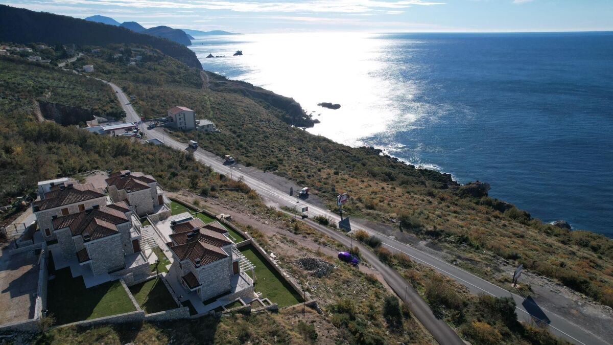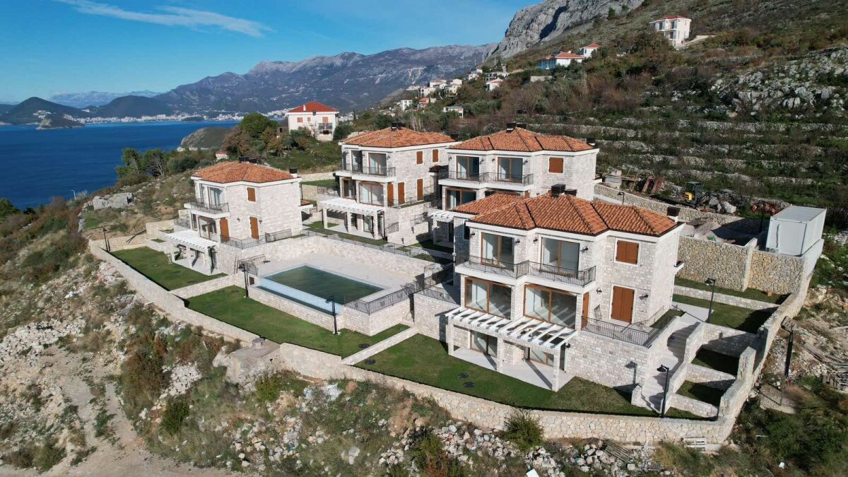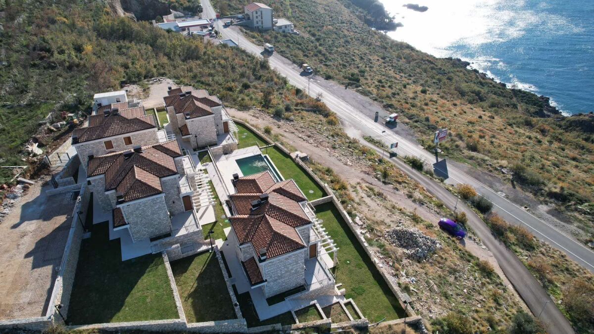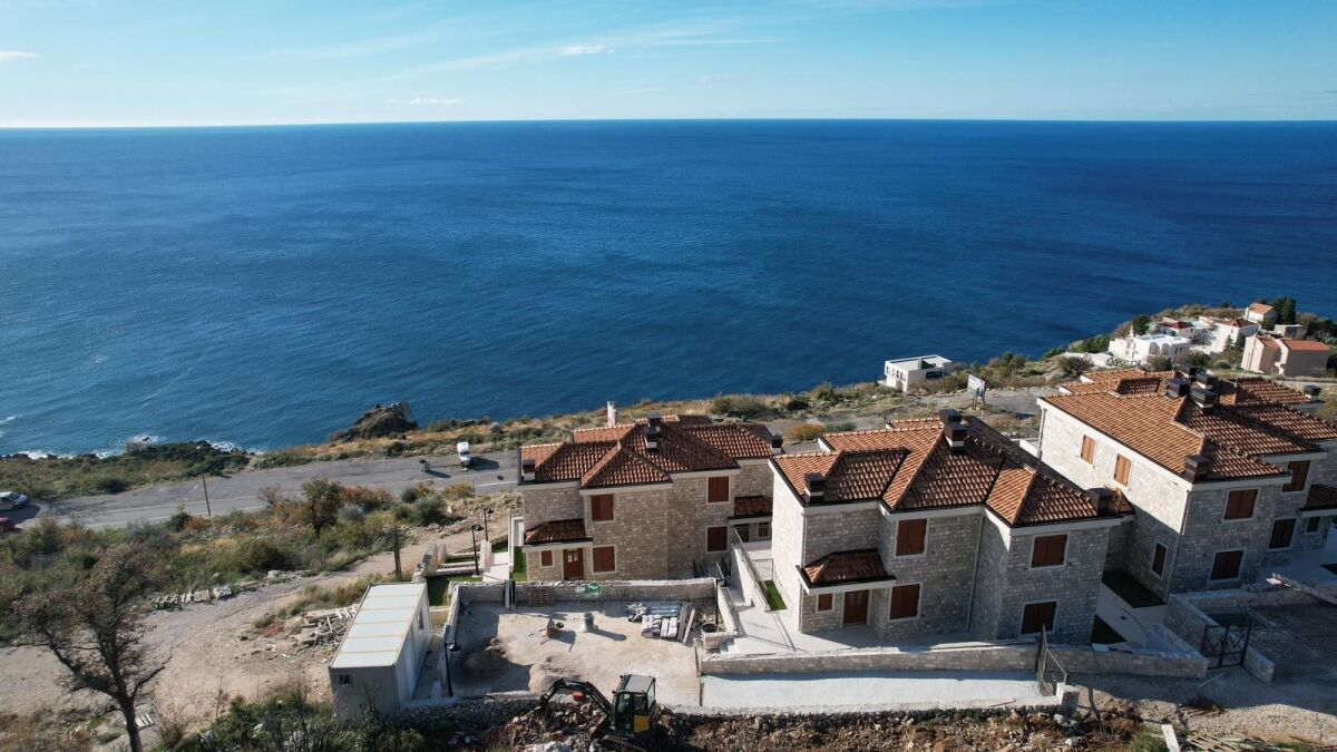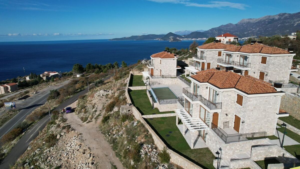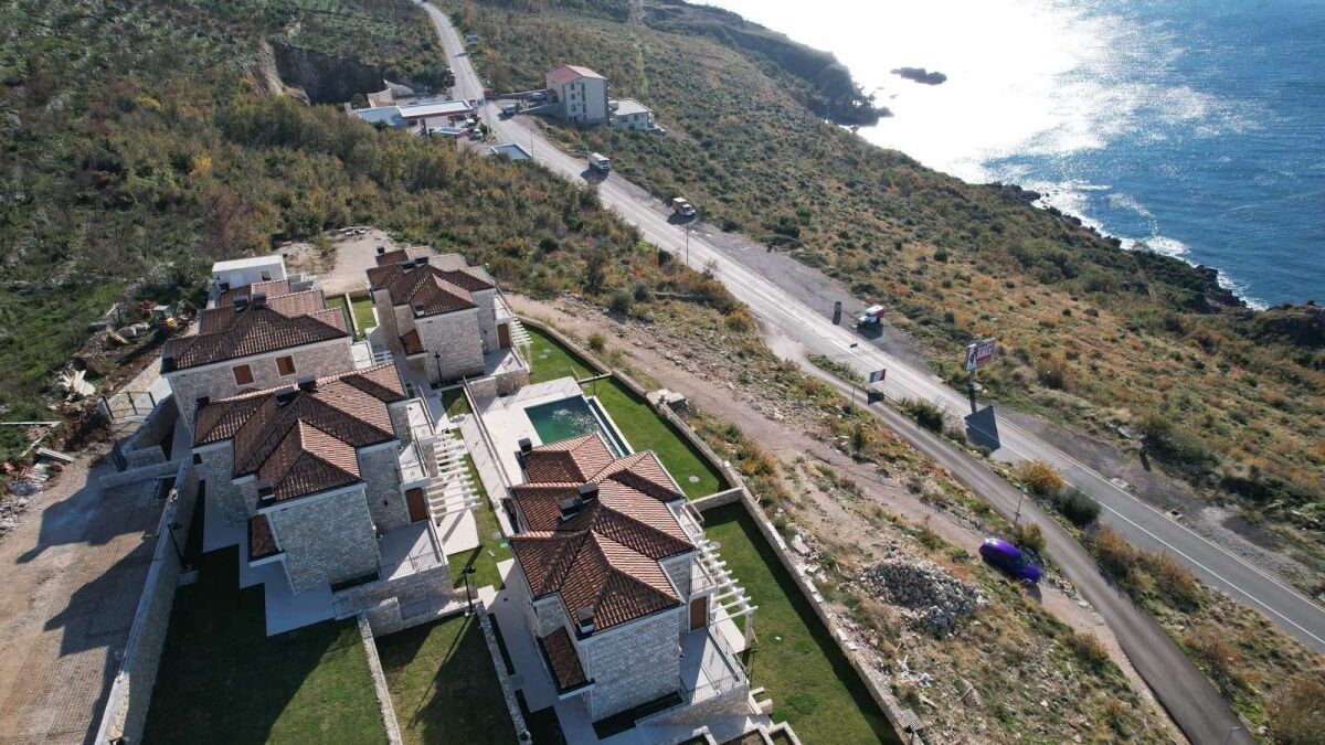 Real Estate, Montenegro For sale: a complex of 8 townhouse units housed in 4 villas, currently in the final stages of construction, located in Reževići, Budva. Each unit has an area of 105 m² and includes 2 or 3 bedrooms, 2 bathrooms, an additional WC, a kitchen, a dining room, and a spacious terrace offering stunning sea views. Each townhouse comes with a private parking space and access to a shared pool. This modern complex is situated in an exclusive location above the main road, providing a unique blend of privacy, natural surroundings, and breathtaking panoramic views of the Adriatic Sea. The authentic ambiance of Reževići adds to the charm of this area. The distance from the complex to Budva is approximately 12 km, while Petrovac, the nearest urban center, is only 3 km away. Tivat Airport is around 30 km away, making the location easily accessible for both local and international buyers.