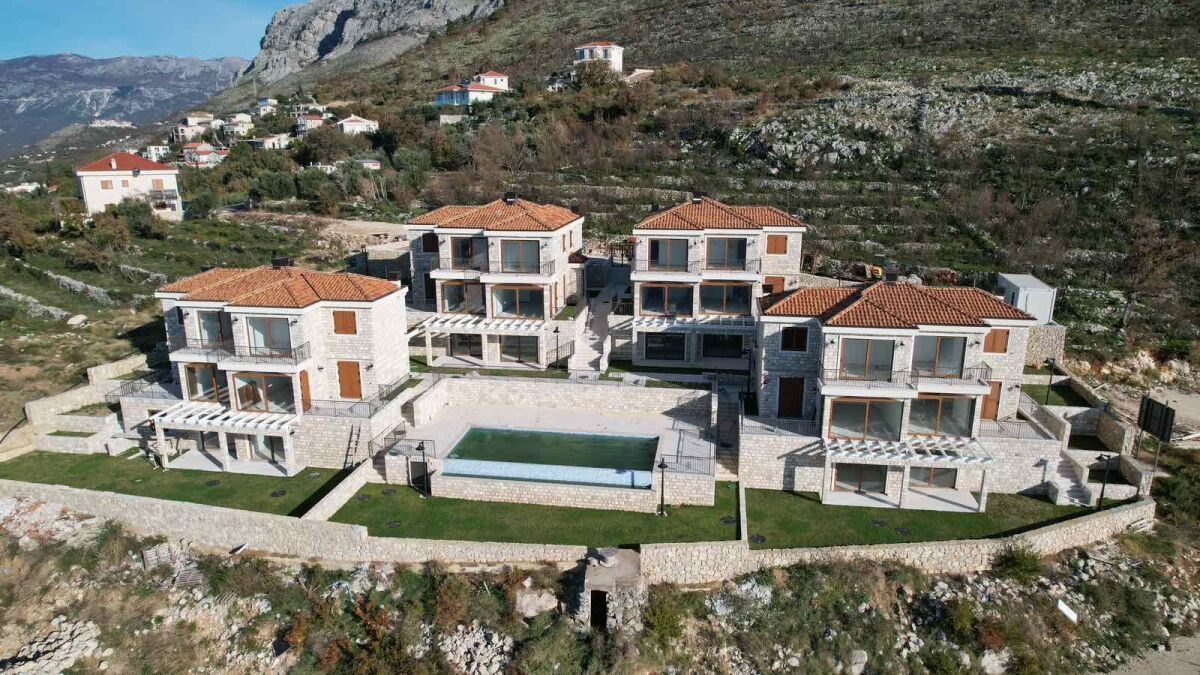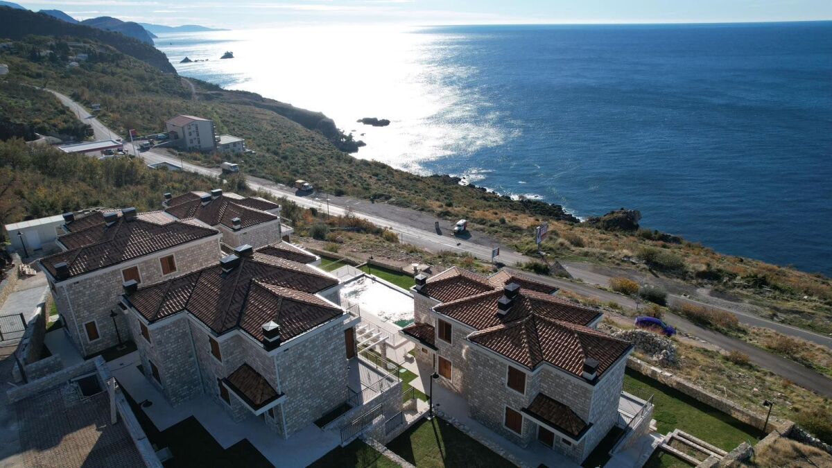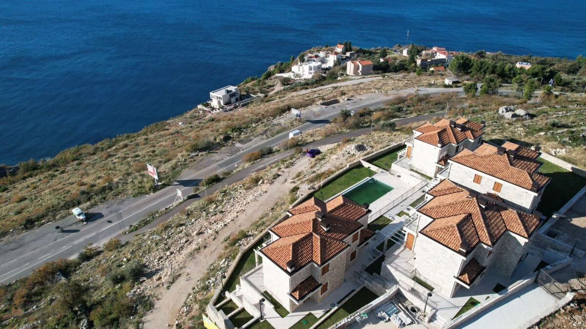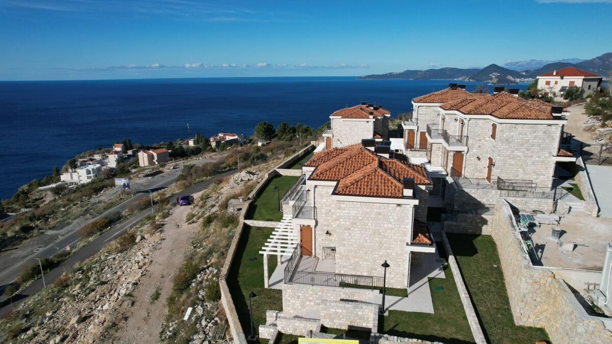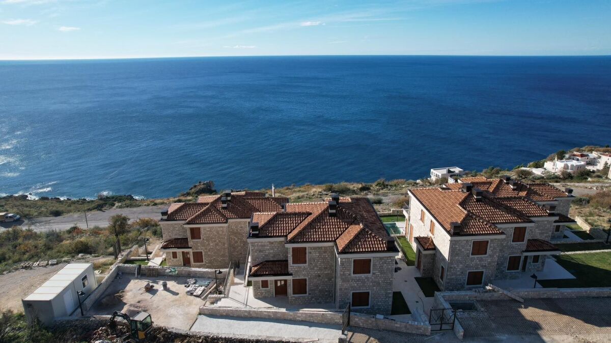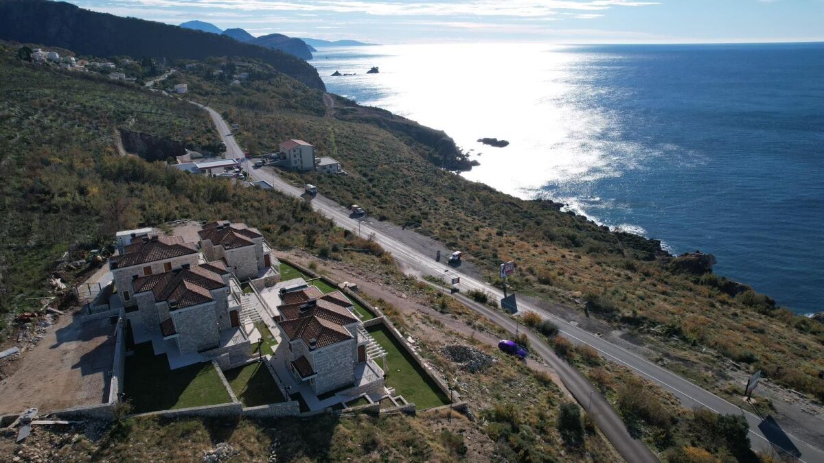 Real Estate, Montenegro For sale: a complex of 8 townhouse units housed in 4 villas, currently in the final stages of construction, located in Reževići, Budva. Each unit has an area of 105 m² and includes 2 or 3 bedrooms, 2 bathrooms, an additional WC, a kitchen, a dining room, and a spacious terrace offering stunning sea views. Each townhouse comes with a private parking space and access to a shared pool. This modern complex is situated in an exclusive location above the main road, providing a unique blend of privacy, natural surroundings, and breathtaking panoramic views of the Adriatic Sea. The authentic ambiance of Reževići adds to the charm of this area. The distance from the complex to Budva is approximately 12 km, while Petrovac, the nearest urban center, is only 3 km away. Tivat Airport is around 30 km away, making the location easily accessible for both local and international buyers.
