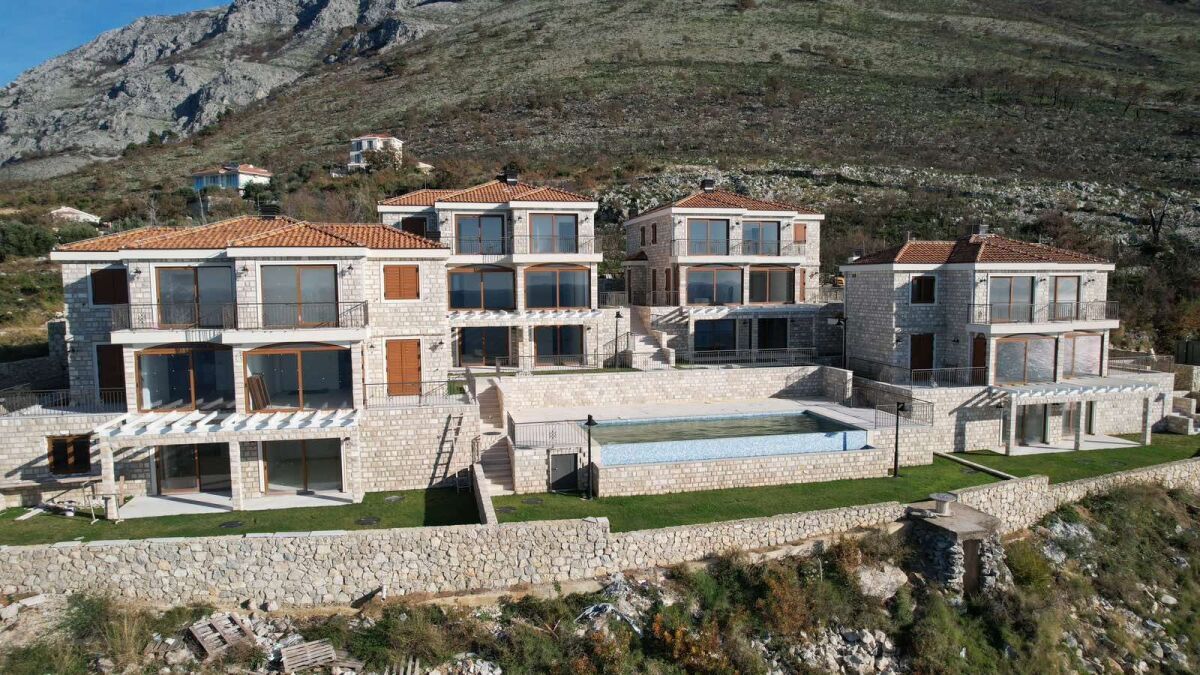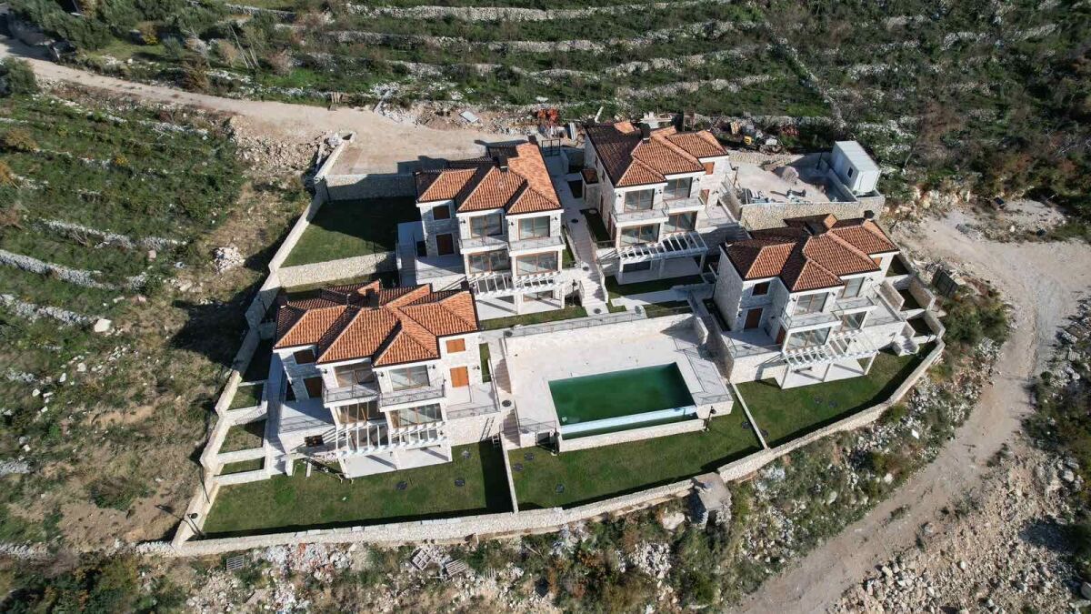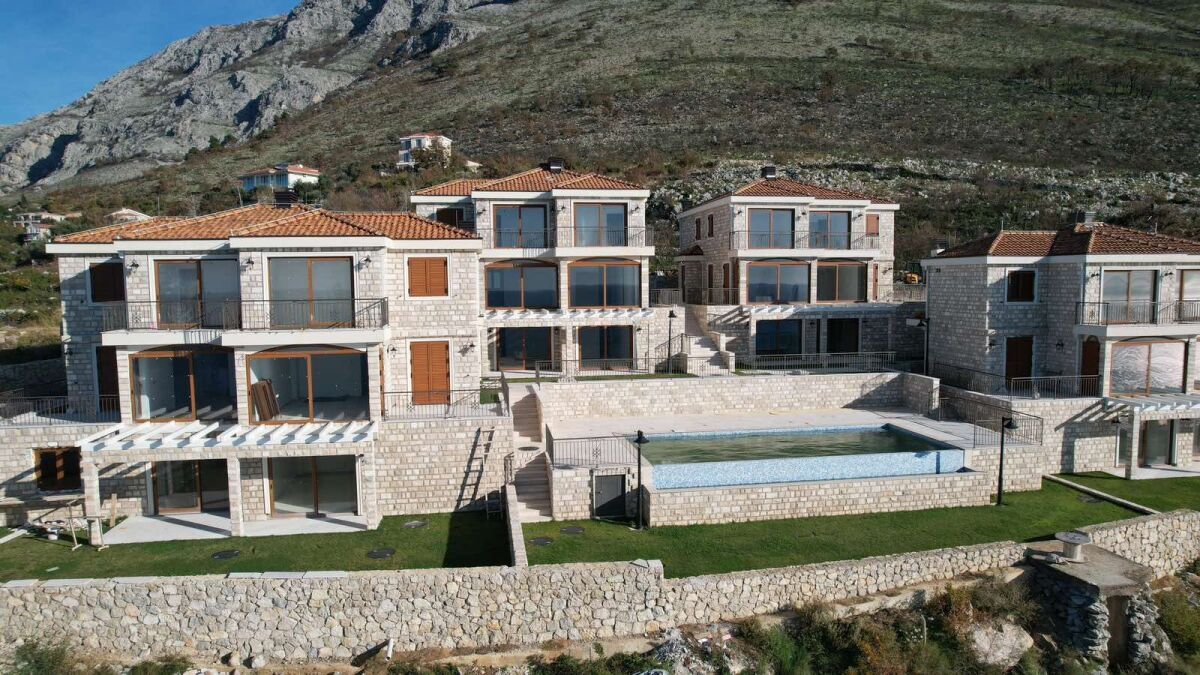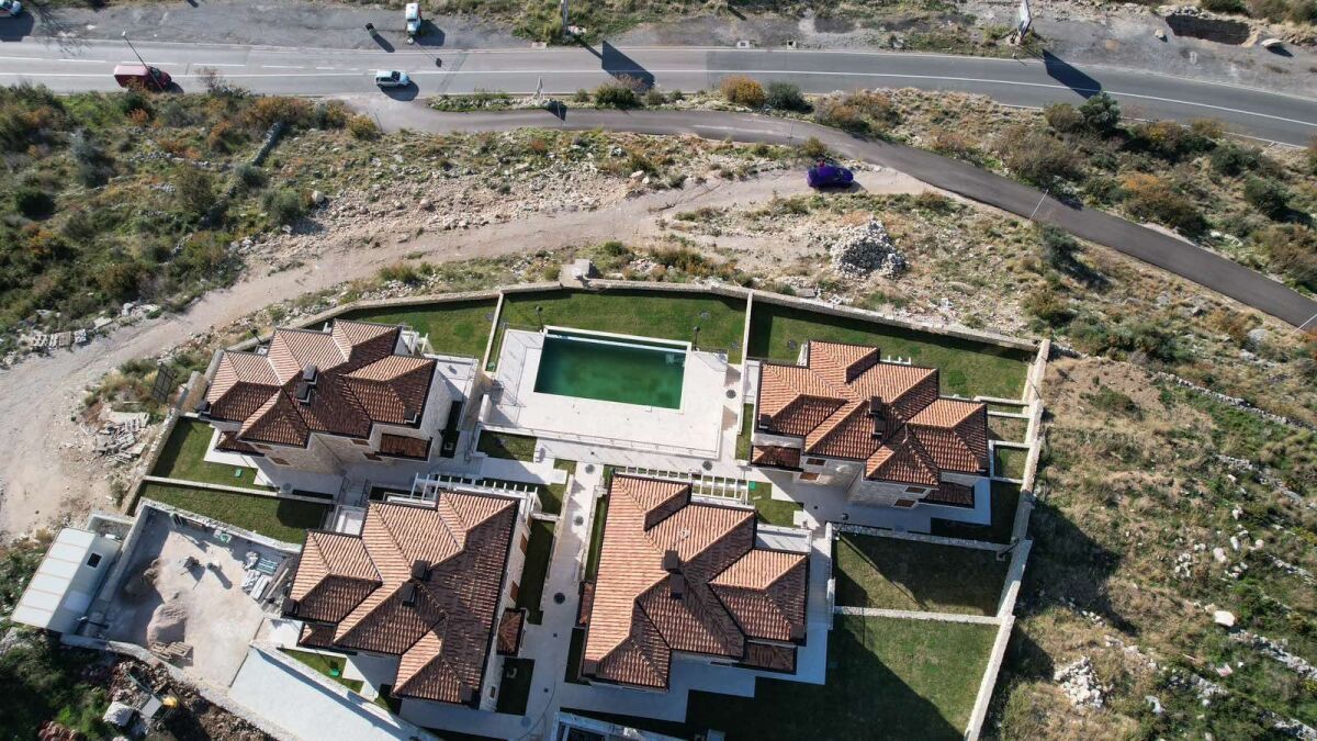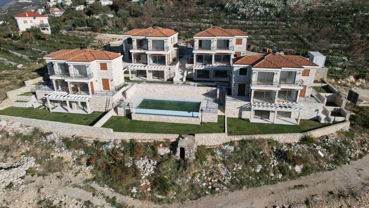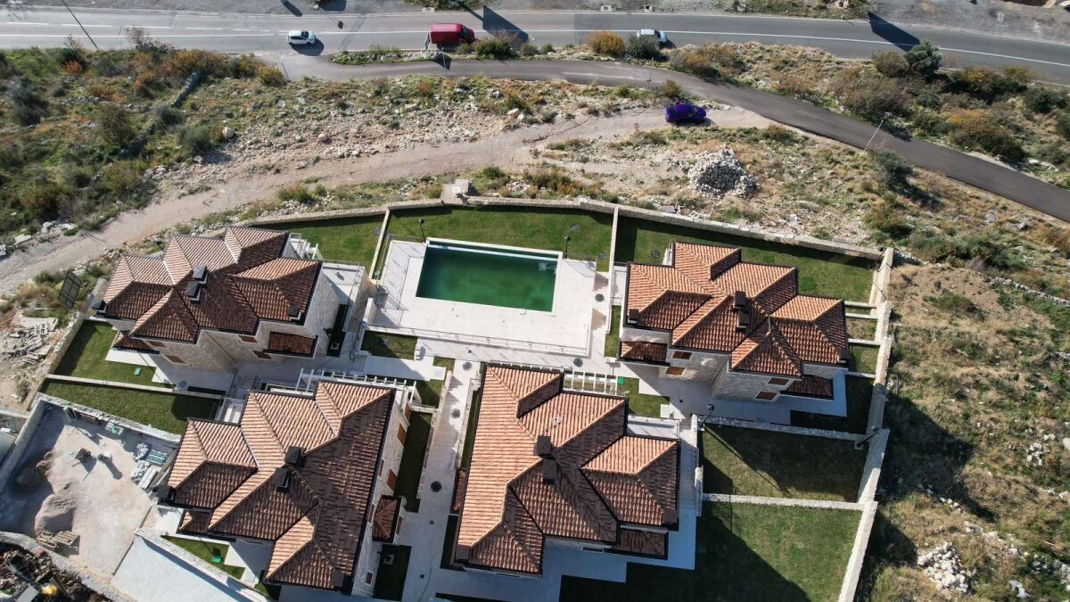 Real Estate, Montenegro For sale: a complex of 8 townhouse units housed in 4 villas, currently in the final stages of construction, located in Reževići, Budva. Each unit has an area of 105 m² and includes 2 or 3 bedrooms, 2 bathrooms, an additional WC, a kitchen, a dining room, and a spacious terrace offering stunning sea views. Each townhouse comes with a private parking space and access to a shared pool. This modern complex is situated in an exclusive location above the main road, providing a unique blend of privacy, natural surroundings, and breathtaking panoramic views of the Adriatic Sea. The authentic ambiance of Reževići adds to the charm of this area. The distance from the complex to Budva is approximately 12 km, while Petrovac, the nearest urban center, is only 3 km away. Tivat Airport is around 30 km away, making the location easily accessible for both local and international buyers.