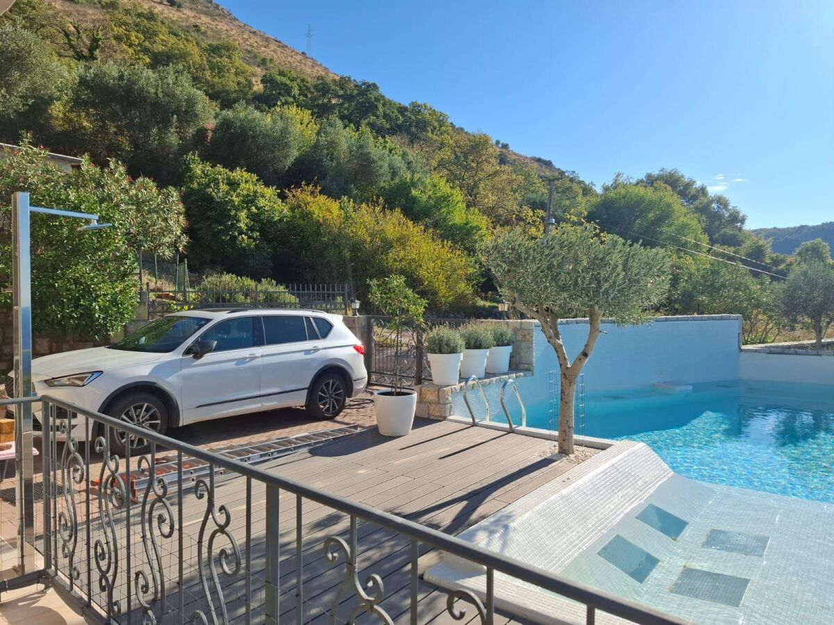 Authentic Stone Villa for Sale with Panoramic Sea View – Reževići Katun, Budva Riviera A unique stone villa for sale, set in an idyllic natural environment at the highest point of the old village of Reževići Katun. With a spectacular 180° panoramic sea view, the villa offers unforgettable sunsets over the Adriatic coast. The property is legally built and has a building permit issued in 2016. The villa is located in an exceptionally peaceful area, ideal for those seeking privacy, silence, and escape from tourist crowds. It is the last house on the hill, next to old stone ruins, at an altitude of approximately 170 m. Access is via a small local road with very little traffic, providing a strong sense of exclusivity. This property is rightly considered one of the finest locations along the Montenegrin coast. City water connection is available. Next to the house there is a luxury infinity pool with saltwater and decorative fountain effects. A garage is located beneath the pool. Behind the house, on the plot, there is an old garden house and a vegetable garden, while directly behind the villa is a historic village fountain dating back to the 1930s. Interior layout: Ground floor: open-plan kitchen, dining area, and living room First floor: two very spacious bedrooms Bathrooms: one bathroom on each floor (shower cabin and corner bathtub) Attic: large storage space The house has a solid structure and the facade is in good technical condition. Property features: Living area: 116 m² Terraces: 2 terraces on two levels approx. 90 m² + pool terrace Garage: 25 m² Land plot: approx. 600 m² The price includes a complete digital interior design project and full renovation plan created by a professional interior designer. Location: Reževići Katun is a small and very quiet village located between Budva and Bar. A bus stop is nearby, as well as the famous Reževići Monastery within walking distance. The nearest shops, restaurants, pharmacies, bakeries, and a gas station are located in Petrovac, just 3 km away. An ideal property for peaceful family living, luxury holidays, or a high-value investment.