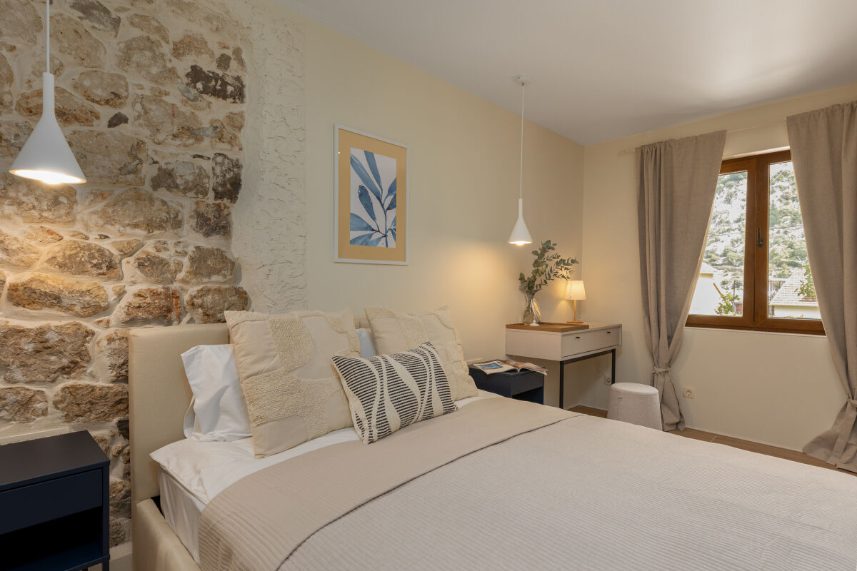 Современная вилла на продажу в престижном районе Шкальяри, Котор. Площадь дома 170 м², участок 140 м². Вилла включает просторную террасу, двор с летней кухней и 2 парковки. В шаговой доступности супермаркеты Idea и Aroma, почта, кафе и рестораны, до Старого города Котора 10 минут пешком. Особенности: зона барбекю, интернет, кондиционеры, тёплый пол. Планировка: 1 этаж — прихожая, кухня-столовая, гостиная, ванная. 2 этаж — спальня с двуспальной кроватью, спальня с двумя односпальными кроватями, ванная. С террасы открывается вид на горы, во дворе обеденная зона и гриль. Дом полностью меблирован и оснащён техникой: плита, духовка, вытяжка, посудомойка, холодильник, стиральная и сушильная машины. Цена: 500.000 €. Возможна долгосрочная аренда — 1.800 €/мес + коммунальные.