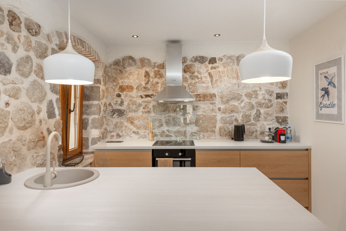 Современная вилла на продажу в престижном районе Шкальяри, Котор. Площадь дома 170 м², участок 140 м². Вилла включает просторную террасу, двор с летней кухней и 2 парковки. В шаговой доступности супермаркеты Idea и Aroma, почта, кафе и рестораны, до Старого города Котора 10 минут пешком. Особенности: зона барбекю, интернет, кондиционеры, тёплый пол. Планировка: 1 этаж — прихожая, кухня-столовая, гостиная, ванная. 2 этаж — спальня с двуспальной кроватью, спальня с двумя односпальными кроватями, ванная. С террасы открывается вид на горы, во дворе обеденная зона и гриль. Дом полностью меблирован и оснащён техникой: плита, духовка, вытяжка, посудомойка, холодильник, стиральная и сушильная машины. Цена: 500.000 €. Возможна долгосрочная аренда — 1.800 €/мес + коммунальные.