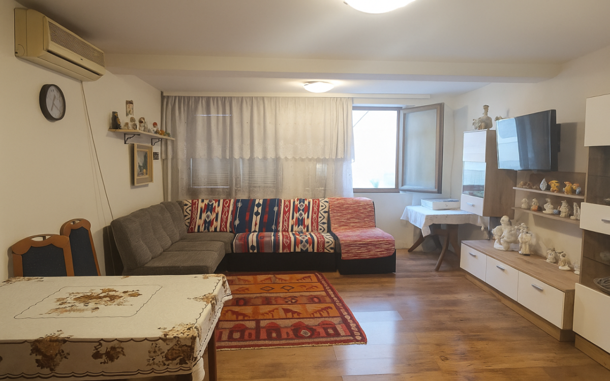 A three—level house for sale in the Shushan (Bar) area is one of the most convenient and attractive places to live and relax. The area is notable for its proximity to infrastructure, the city center and one of the most popular beaches in Bar. The beach is 450 m away, the Anto Đedović school is about 500 m away, and the city center is less than 2 km away. There is a shop next to the house. The entrance is on a wide paved road without steep ascents, convenient for any car. All communications are urban — electricity, water supply, sewerage. The total area of the house is 215 m2. On the lower level there are two rooms: one small, utility and the second more spacious, which after renovation can be converted into a separate apartment for guests or rent. The middle floor includes a living room with a kitchen area, two bedrooms, a bathroom, an entrance hall and a large garage of 34 m2, which can be used as a workshop. On the upper floor there are two bedrooms, a living room with a kitchen area, a bathroom, an entrance hall and a large terrace with sea views. Each residential floor has air conditioning. Each level has a separate entrance and is self-contained, which allows two families to live or rent one floor. There is parking for three cars in the courtyard. A flat plot of 215m2 of regular shape with grapes and fruit trees. The house is insulated, without traces of dampness and mold, is in good technical condition. Sold with furniture and equipment, fully ready to move in immediately after purchase. A cozy, well-maintained house, suitable for permanent residence, as well as for vacation or rental.