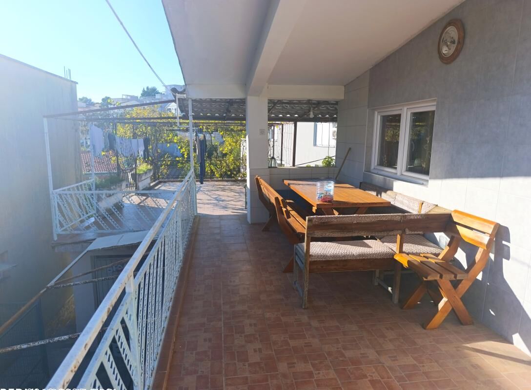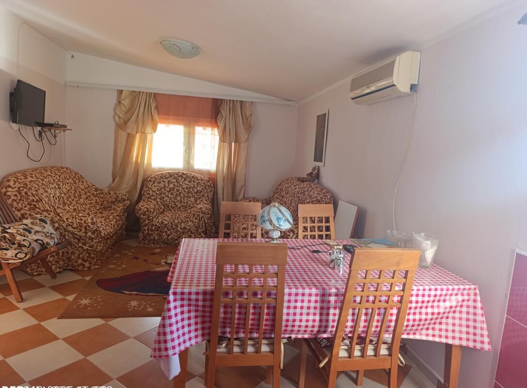 A three—level house for sale in the Shushan (Bar) area is one of the most convenient and attractive places to live and relax. The area is notable for its proximity to infrastructure, the city center and one of the most popular beaches in Bar. The beach is 450 m away, the Anto Đedović school is about 500 m away, and the city center is less than 2 km away. There is a shop next to the house. The entrance is on a wide paved road without steep ascents, convenient for any car. All communications are urban — electricity, water supply, sewerage. The total area of the house is 215 m2. On the lower level there are two rooms: one small, utility and the second more spacious, which after renovation can be converted into a separate apartment for guests or rent. The middle floor includes a living room with a kitchen area, two bedrooms, a bathroom, an entrance hall and a large garage of 34 m2, which can be used as a workshop. On the upper floor there are two bedrooms, a living room with a kitchen area, a bathroom, an entrance hall and a large terrace with sea views. Each residential floor has air conditioning. Each level has a separate entrance and is self-contained, which allows two families to live or rent one floor. There is parking for three cars in the courtyard. A flat plot of 215m2 of regular shape with grapes and fruit trees. The house is insulated, without traces of dampness and mold, is in good technical condition. Sold with furniture and equipment, fully ready to move in immediately after purchase. A cozy, well-maintained house, suitable for permanent residence, as well as for vacation or rental.