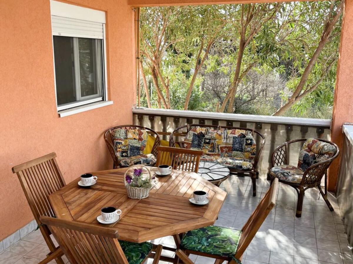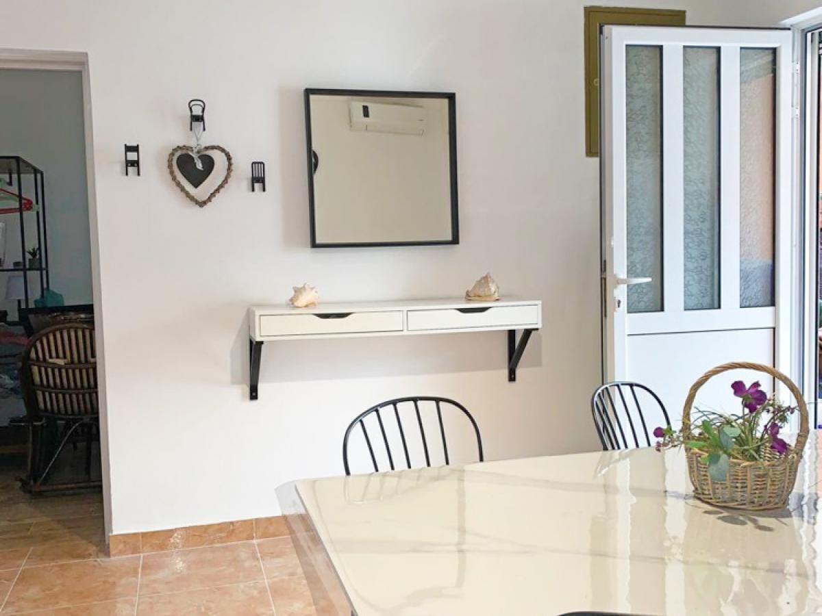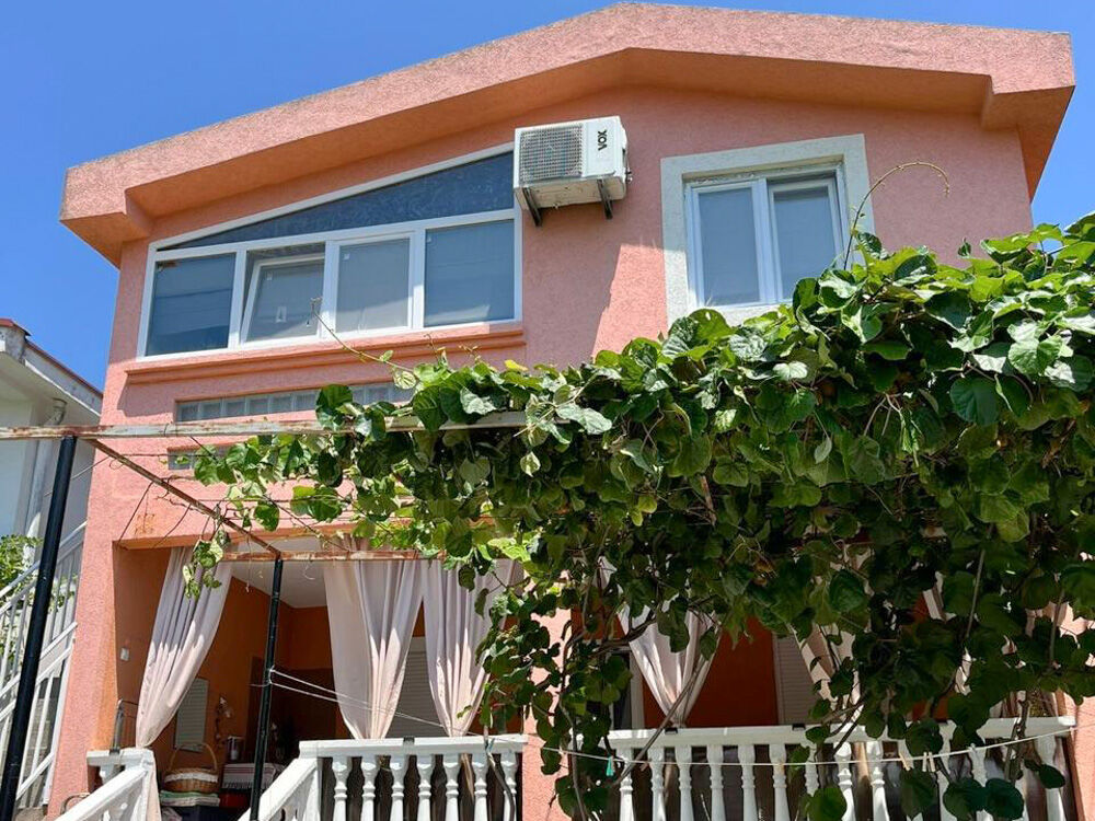 Legal two-story house with two apartments in Sutomore below the highway. The area of the two-story house is 122m2 + 30m2 terrace. The area of the plot is 180m2. Layout: 1st floor: living room combined with kitchen, three bedrooms, bathroom with shower, spacious terrace with mountain views. 2nd floor: hallway, living room, three bedrooms, kitchen with dining area, two bathrooms with shower, mountain view and partial sea view. The first floor is furnished and equipped with household appliances and is used as apartments for year-round rental to tourists. It has a high rating on Booking. The second floor is used for the permanent residence of the family and is equipped with necessary household appliances. The house is sold partially furnished. Heating of the house is provided by inverter air conditioners. There is an opportunity to install solar panels under a government program on favorable terms, as the roof orientation allows for the placement of a sufficient number of panels. Central city water supply. The house is located below the highway in a flat area. Fenced territory. Parking in the yard. Fruit trees (oranges, tangerines, kiwi, passion fruit), decorative plants, barbecue area. The city has developed infrastructure, including a kindergarten, school, medical point, and a large private hospital. 200 meters from the house is a large HDL supermarket, as well as 4 supermarkets within 1 km. Distance to the city center is 900 meters. Distance to the beaches is 1-1.5 km.