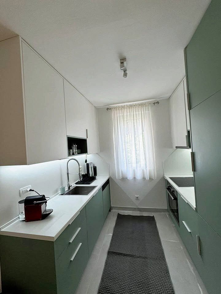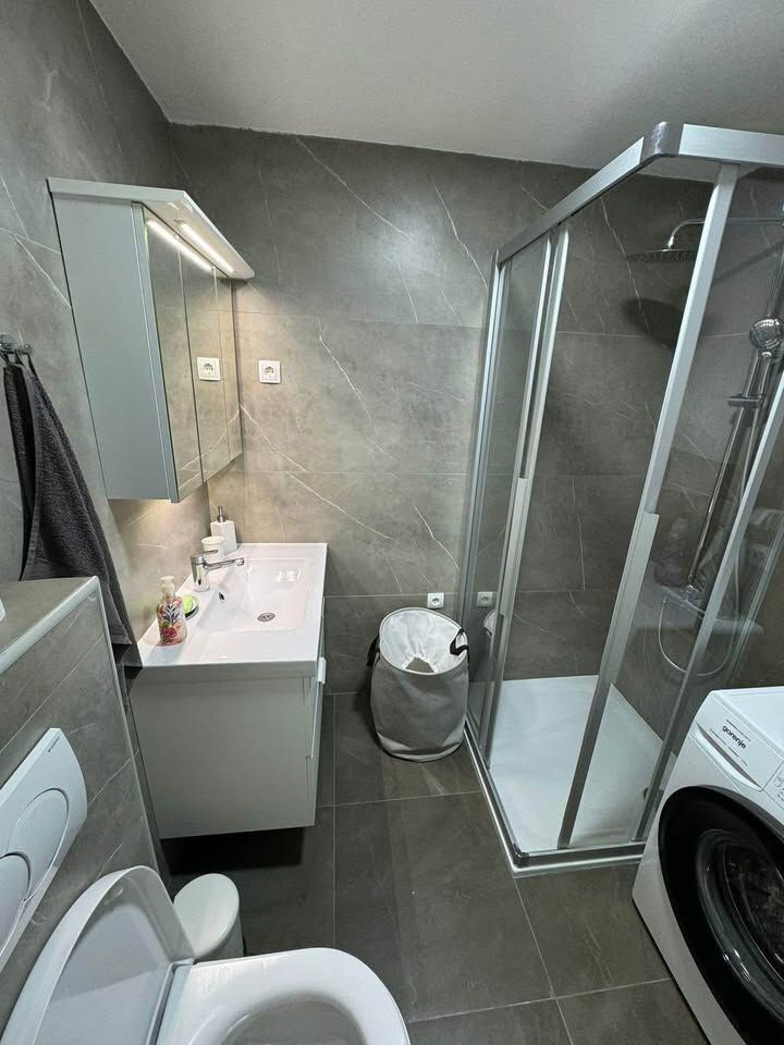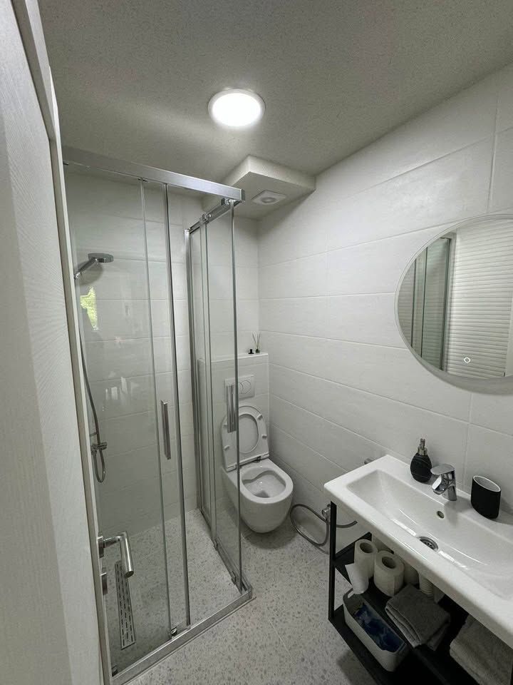 Spacious apartment for rent in the center of Bar, near the Opština. The apartment features two bedrooms, two bathrooms, and two terraces. Fully furnished and equipped with household appliances, including a dishwasher and capsule coffee machine. A large parking area is nearby, and the windows overlook a green park, offering peace and fresh air in the city center. The beach is about 800 meters away. Long-term rental. Payment terms: 1+1+deposit.