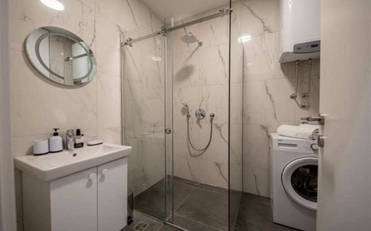 A 34 sq m studio apartment is available for rent in SOHO CITY, located in the center of Bar. It's a 5-minute walk from the sea and close to a sports complex, shops, restaurants, a park, and the beach. This modern residential complex features a reception area and a smart home system. The apartment features a contemporary design, comfortable, high-quality furniture, all necessary appliances, a living room with a dining area, a bedroom with a king-size bed, a fully equipped kitchen, a spacious bathroom, a walk-in closet that runs the length of the hallway, and a sunny terrace. Panoramic windows offer mountain views and a side sea view. The apartment is located on the 5th floor. Payment is due upfront: first month, last month, and a deposit equal to the monthly rent. Monthly rent plus utilities.