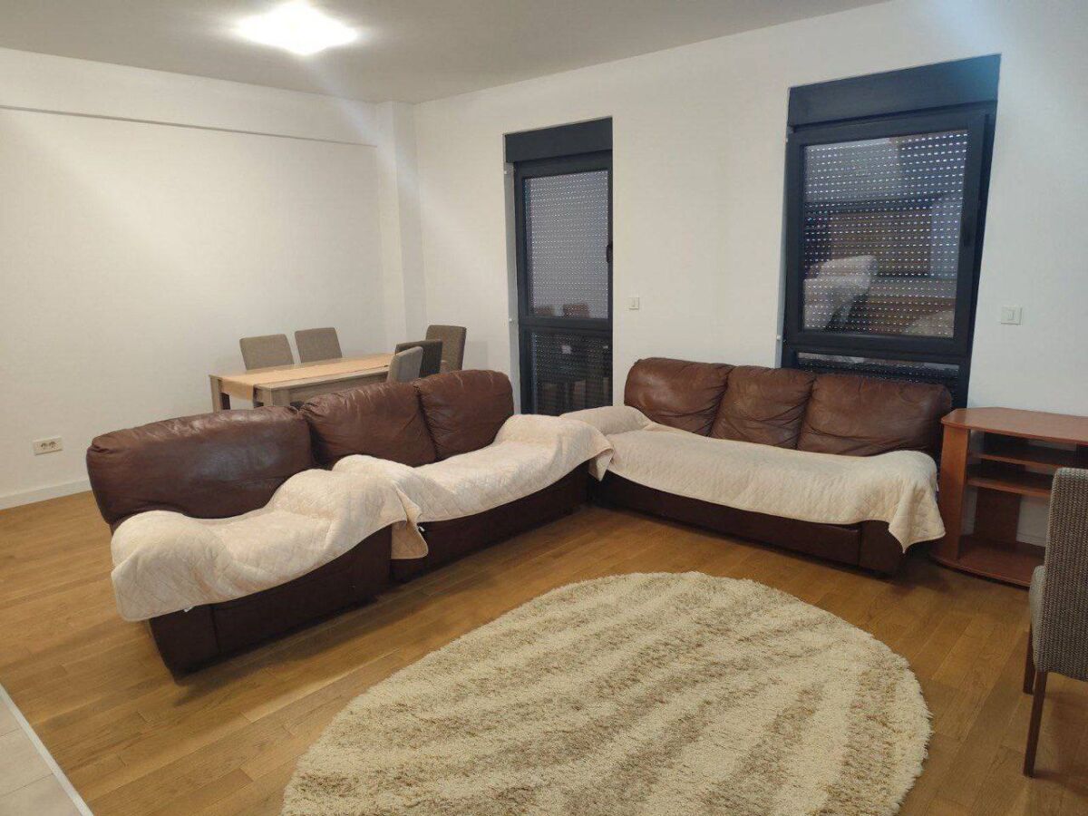 Apartment in a new building near the market in Bar Object No. 642 City: Bar Area: 67 m2 Number of bedrooms: 2 Rent: for a year or more Price: 550€ Consists of a living room-kitchen with a dining area, 2 bedrooms, a bathroom, a toilet, a terrace, and a corridor. Located on the 3rd floor of an apartment building with an elevator. There is underground parking, air conditioning, a refrigerator, and a washing machine. Distance to the beach – 1.1 km, to the nearest supermarket – 600 m, market 50 m away, to the school - 750 m. Rent price – 550 euros per month with a minimum rental period of one year. Utility bills are paid separately.