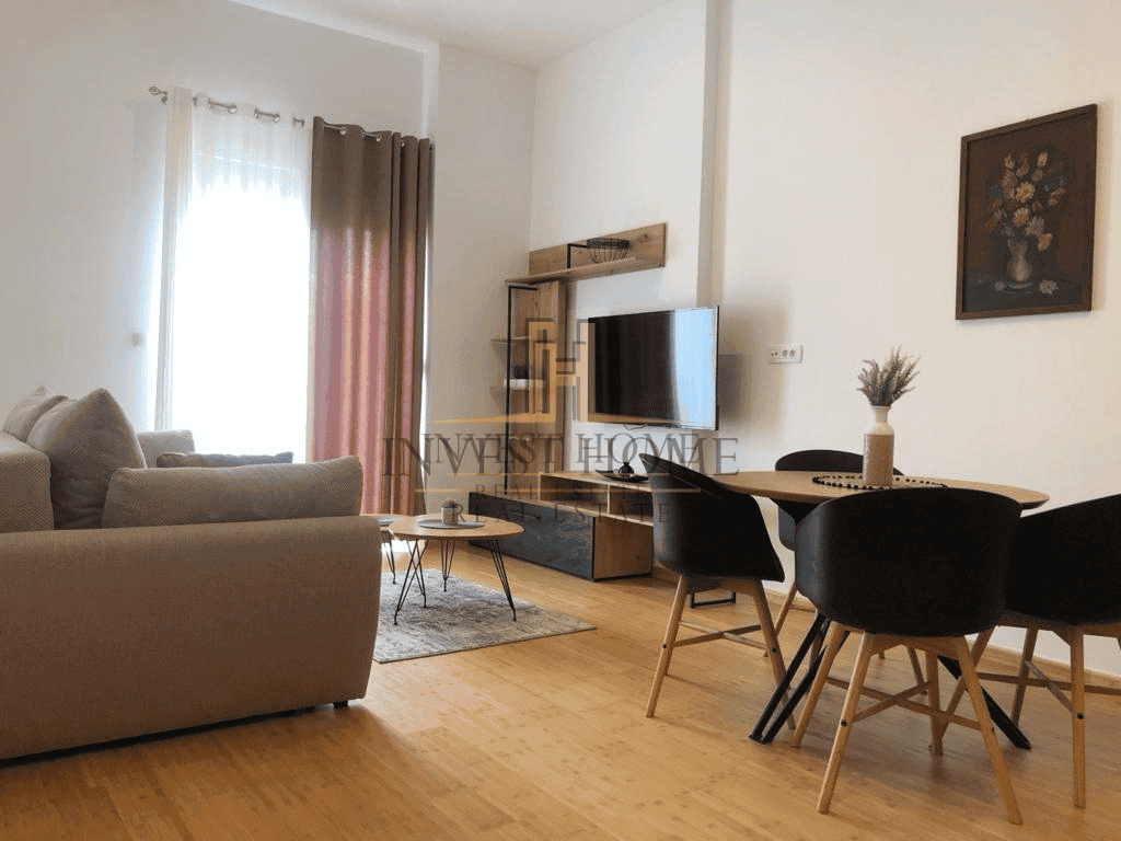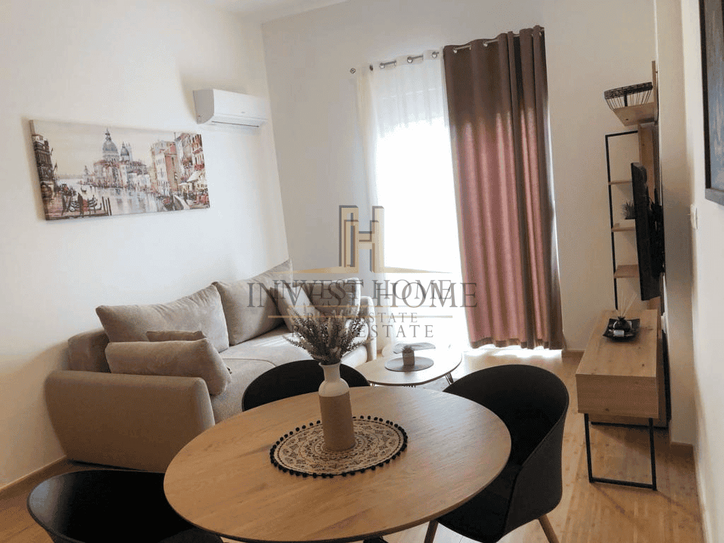For rent is a one-bedroom apartment in Bar, with an area of 40m2. The structure of the apartment includes a living room, dining area with kitchen, bedroom, hallway, bathroom, and terrace. It is close to elementary schools, kindergartens, restaurants, cafes, and markets. The apartment is furnished and is located on the ground floor of a newly built building. It is 500 meters away from the sea.