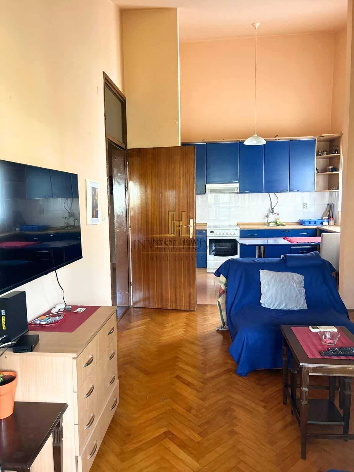 For rent, a one-bedroom apartment in Bar, with an area of 50m2. It is located on the fifth floor of a residential building that has an elevator. The apartment is in an excellent location near the primary school "Blažo Jokov Orlandić," numerous restaurants, markets, and other city events. It is fully furnished with a nice layout and the following structure: living room with kitchen and dining area, hallway, bedroom, bathroom, and balcony.