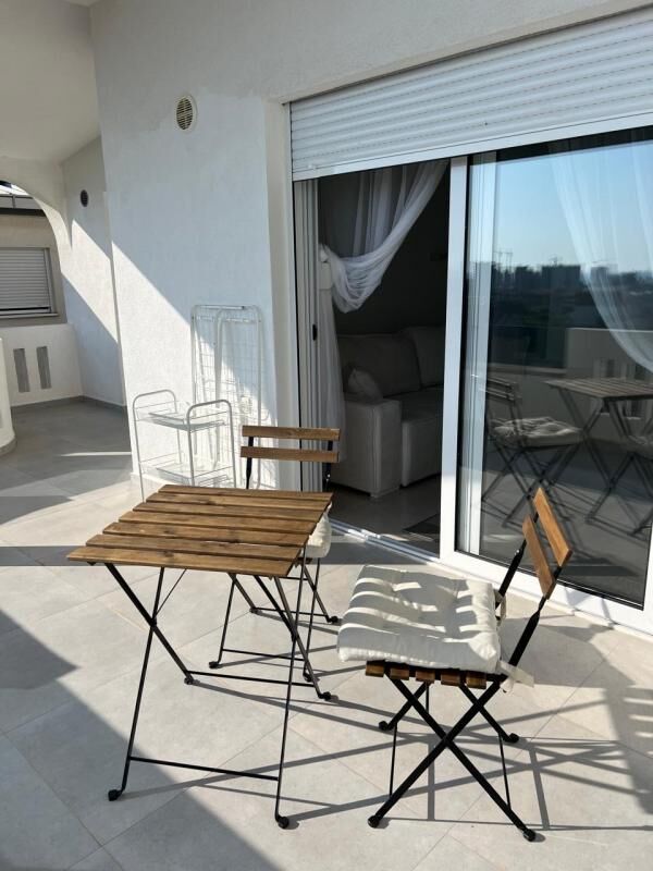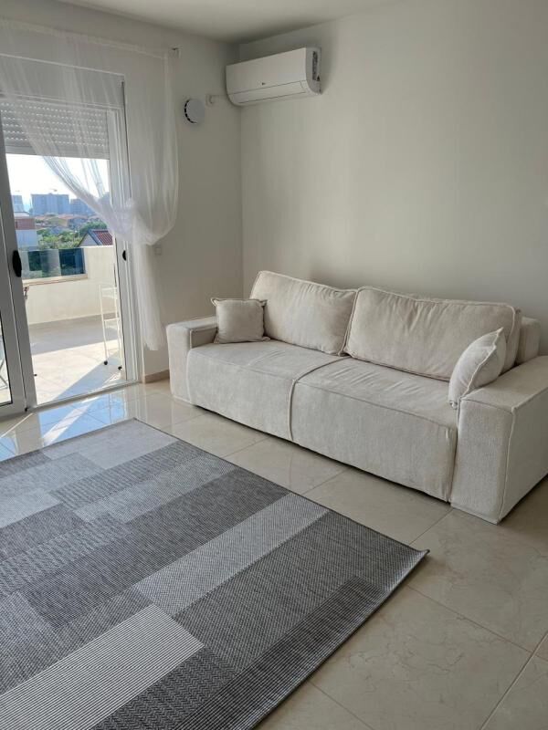 Apartment with a total area of 55m2 (including a terrace of 15m2), with 1 bedroom, on the 2nd floor of a 3-story building in the Burtaiši area (not on a hill, sea view). The apartment has a modern design and fresh wall and ceiling finishes, a new working extractor hood is installed, the apartment is dry, without mold. Water and electricity are connected. The apartment is fully equipped: washing machine, dishwasher, large refrigerator, electric stove, oven, air conditioner. Huge balcony with a beautiful view. Quiet and safe area, all infrastructure within walking distance. Payment for the month, plus utilities. Payment upfront: for the first month + last + deposit.