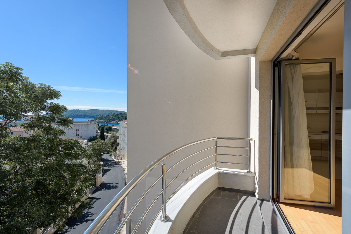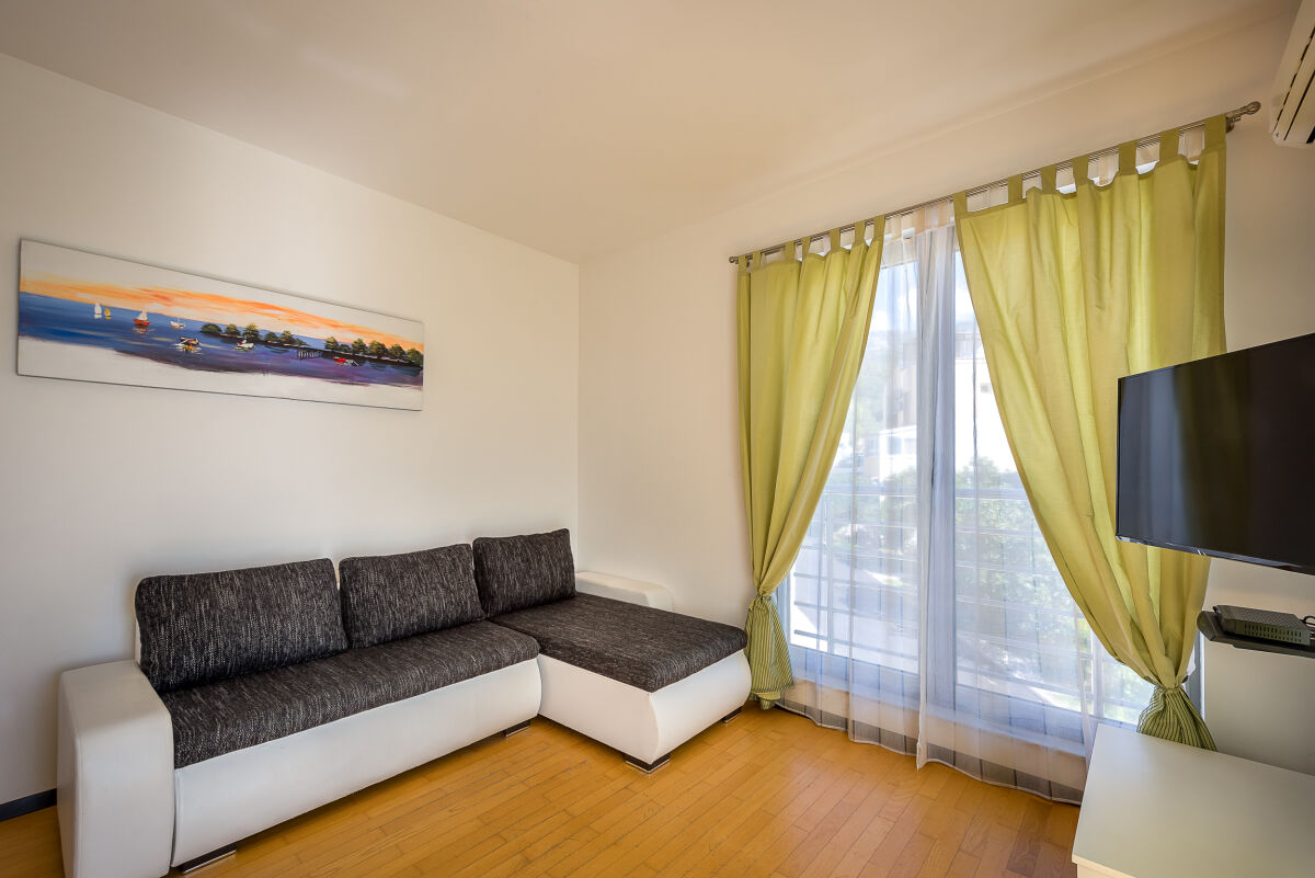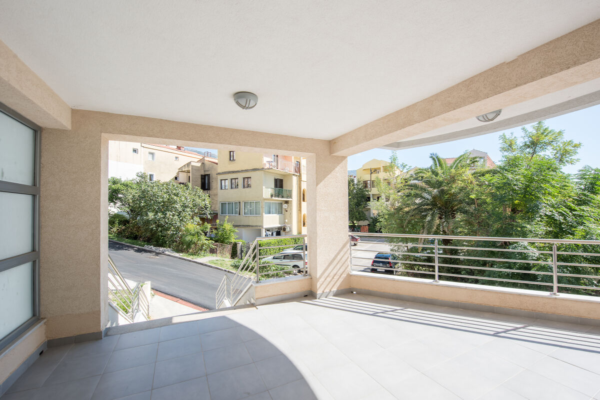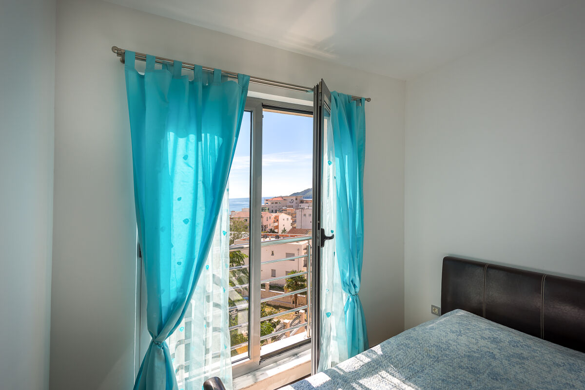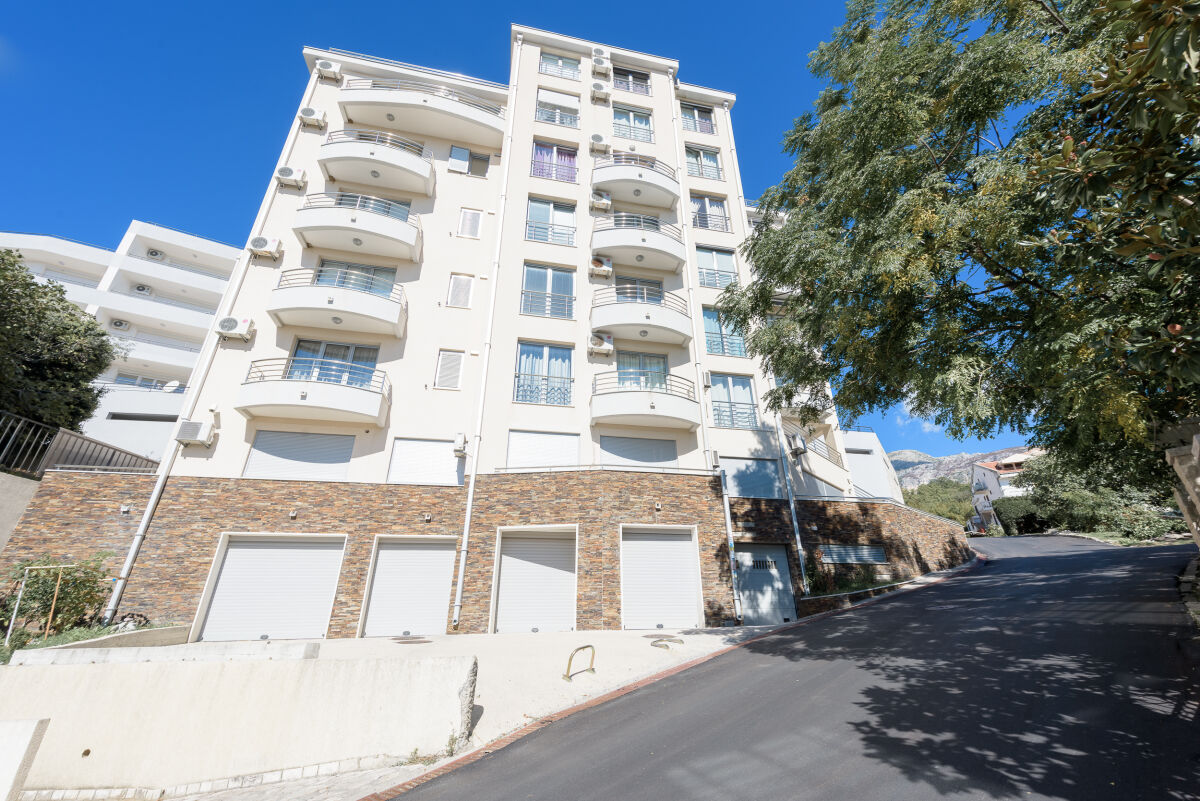 Rental until summer. The apartment has 1 bedroom and a living area combined with the kitchen. There is access to the terrace from the living room. The apartment with an area of 50 m2 has a living room combined with the kitchen, a terrace, and a bathroom with a shower cabin. In the bedroom, there is a large double bed and a spacious wardrobe. In the living room, there is a sofa for 2 persons. In the kitchen, there is a stove, microwave, refrigerator, and a set of dishes. There is air conditioning, cable television, internet-mobile WiFi router, and a washing machine. It takes 5-7 minutes to walk to the sea. Sremskog Fronta Street has an incline. A large supermarket is 5 minutes away, a pharmacy, and small shops and fruit stalls are within a 2-3 minute walk. Nearby is a water park and the five-star hotel "Splendid," which has a year-round SPA center. There are playgrounds by the sea. From the apartments, you can walk to the Old Town of Budva in 30-40 minutes along the seashore or take a car for 5-6 minutes, and it takes 10-15 minutes to reach the village of Rafailovici with many restaurants right by the sea.
