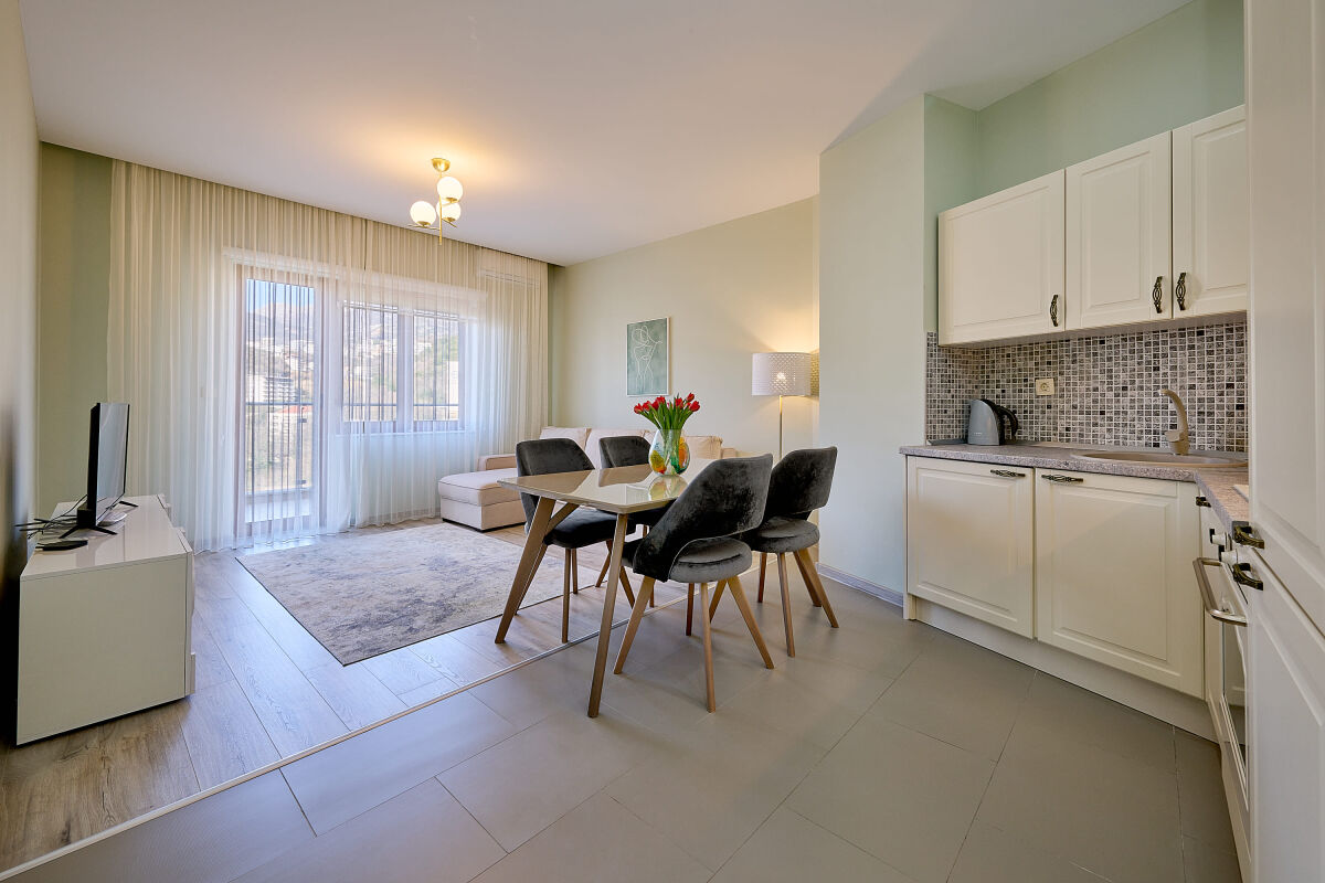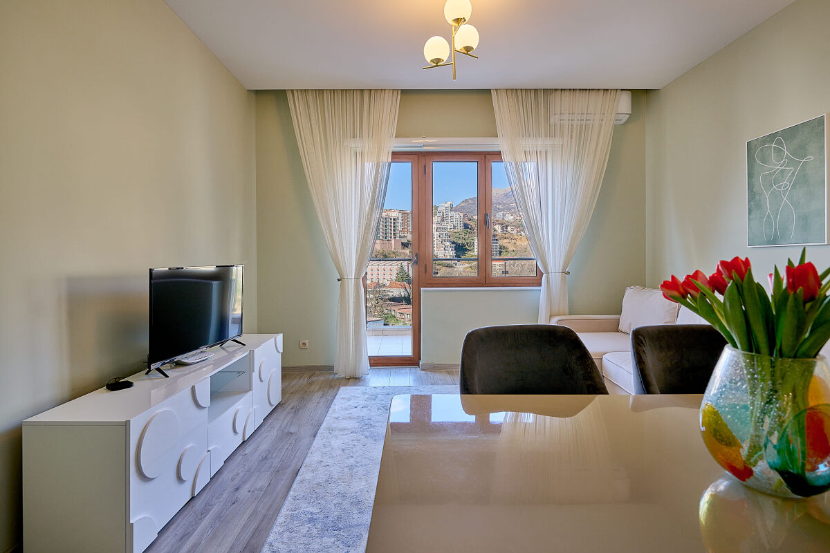 For the whole year, private apartments are available for rent in the closed complex Belvedere Residence, Bečići. ⭐️⭐️⭐️⭐️ * 60 sq.m, one bedroom and a living room with a kitchen. Fully furnished apartment, there is a washing machine, dishwasher, and oven. Parking space - free of charge. Use of the pool on the premises is a bonus with the rental of the apartment. Excellent location - nearby grocery stores, restaurants, and a pharmacy. The building has a private kindergarten. Notarial contract is possible. Available from December 1, 2025. Cost 1000€ + utilities.