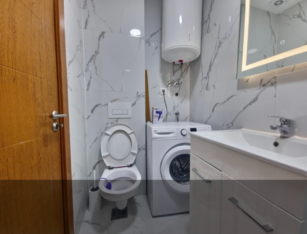 A modern one-bedroom apartment is for rent in a new building in the center of Podgorica.