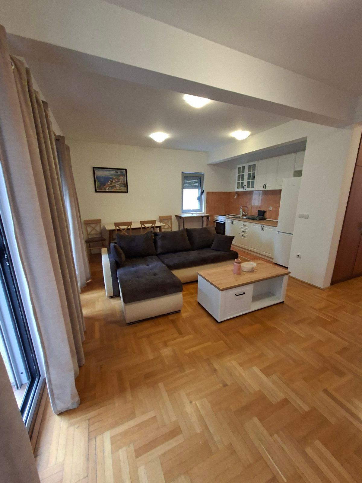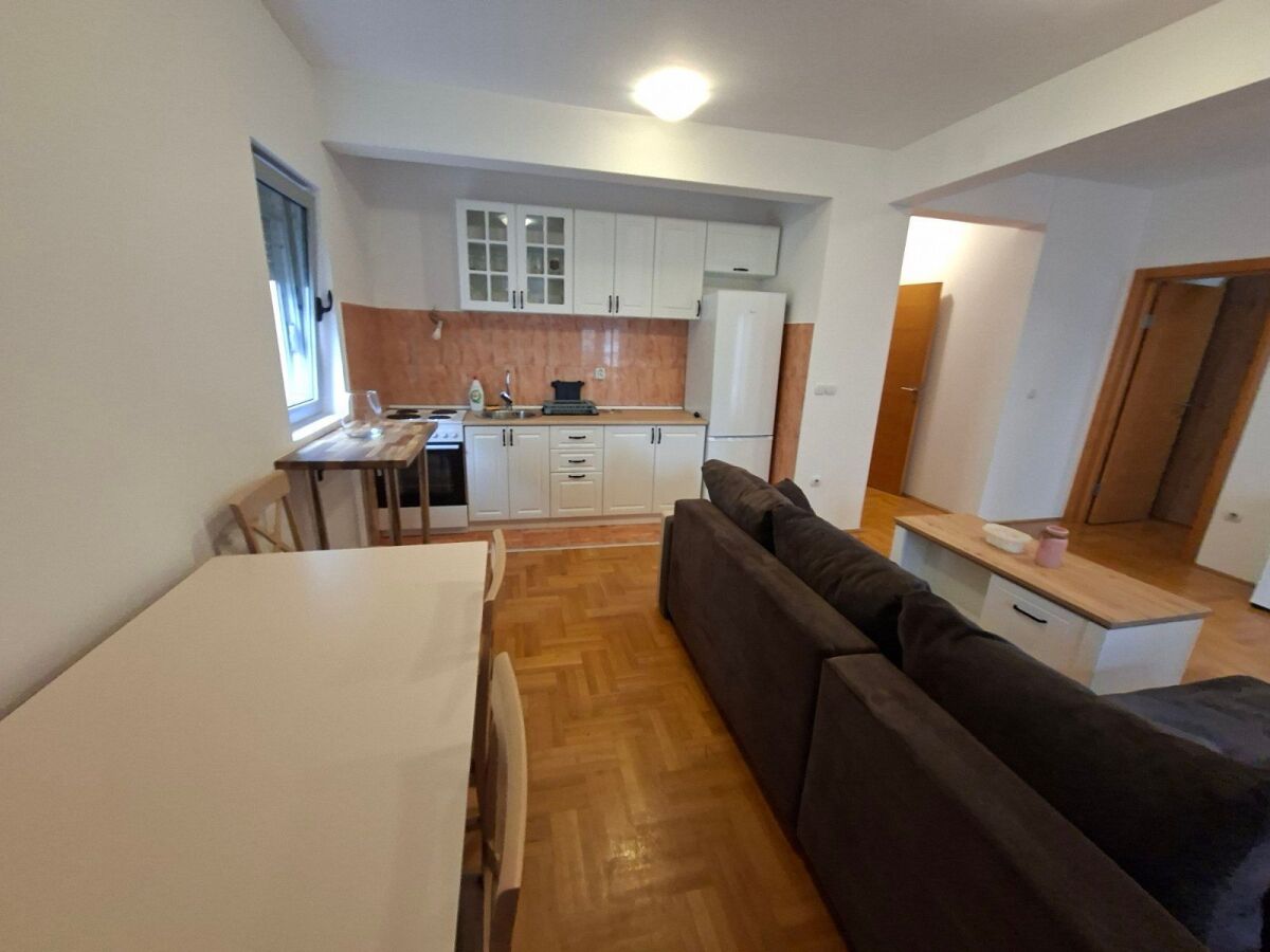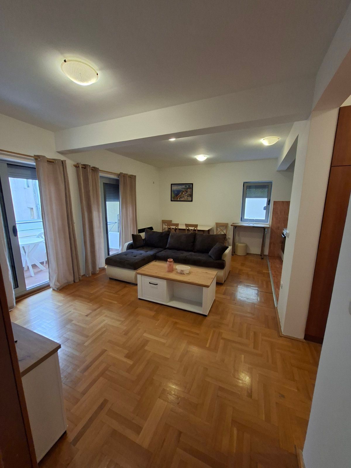 Real Estate, Montenegro, Budva – Velji Vinogradi A two-bedroom apartment of 59 m² is available for rent in an excellent location in Velji Vinogradi, Budva. The apartment is fully furnished and located on the 1st floor. Layout: two bedrooms, living room with kitchen and dining area, bathroom, and terrace. The apartment is just 450 meters from the sea. Very good location, close to large supermarkets, shops, the promenade with cafés and restaurants. Payment terms: One-year contract, two monthly rents in advance (first and last), plus a deposit equal to one monthly rent.