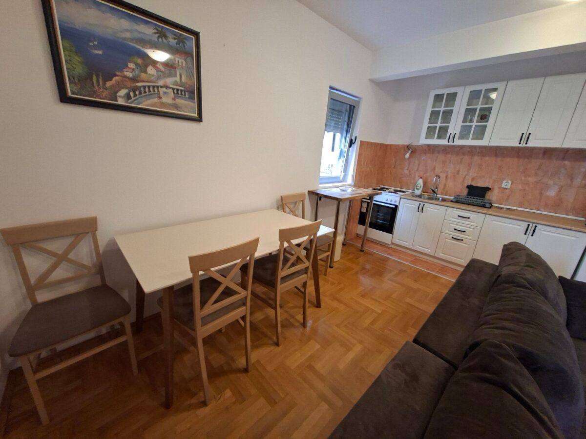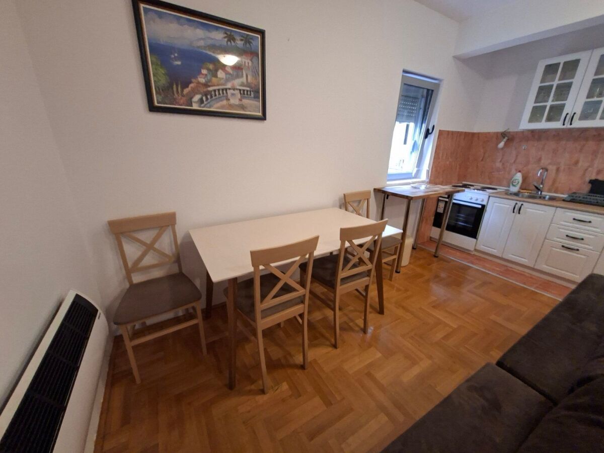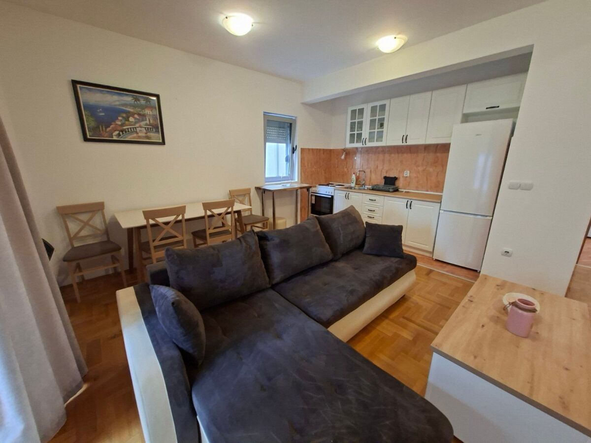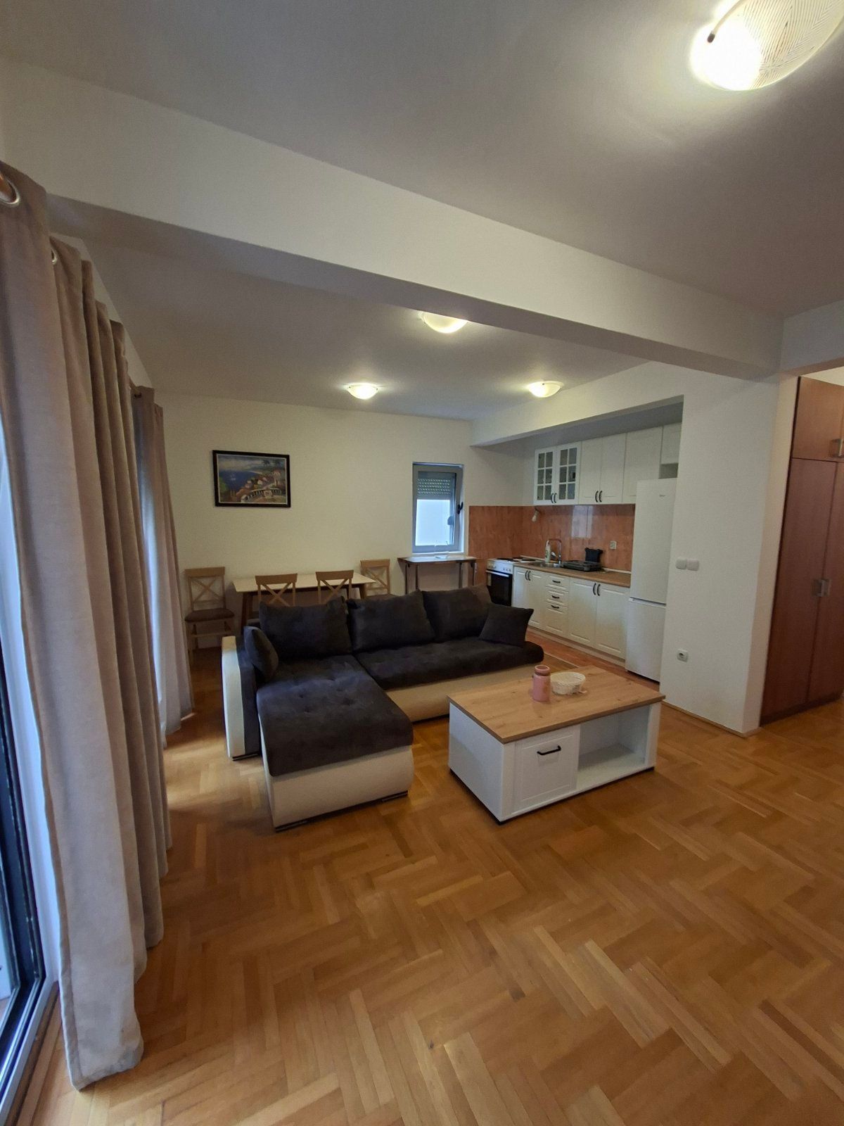 Real Estate, Montenegro, Budva – Velji Vinogradi A two-bedroom apartment of 59 m² is available for rent in an excellent location in Velji Vinogradi, Budva. The apartment is fully furnished and located on the 1st floor. Layout: two bedrooms, living room with kitchen and dining area, bathroom, and terrace. The apartment is just 450 meters from the sea. Very good location, close to large supermarkets, shops, the promenade with cafés and restaurants. Payment terms: One-year contract, two monthly rents in advance (first and last), plus a deposit equal to one monthly rent.