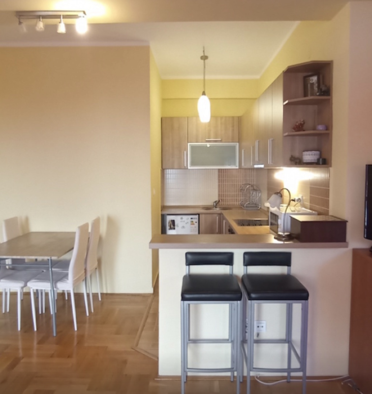 A modern one-bedroom apartment is for rent in a new building in the center of Podgorica.